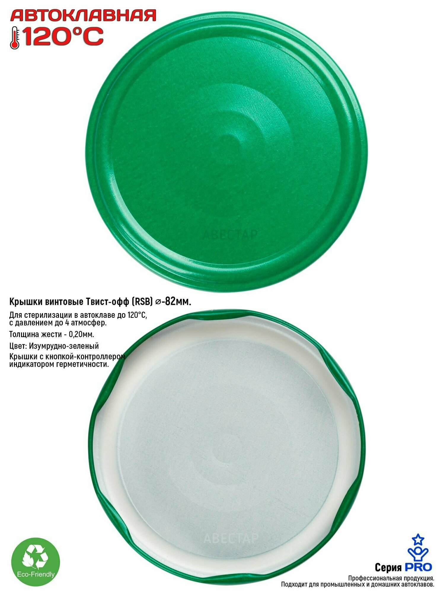 | Комплектация | Крышки для автоклавирования Твист-офф III-82 "АВТОКЛАВНАЯ Зеленая" . Количество крышек в упаковке 240 штук. (12 упаковок по 20 штук крышек). |