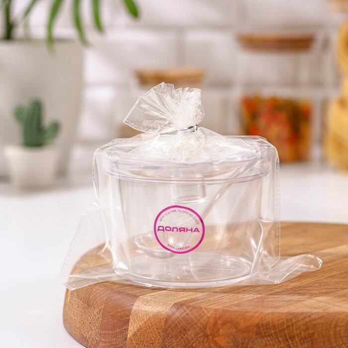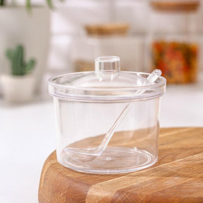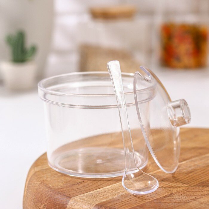 Сахарница с ложкой Доляна, 400 мл, 10,5×10,5×10 см, цвет прозрачный