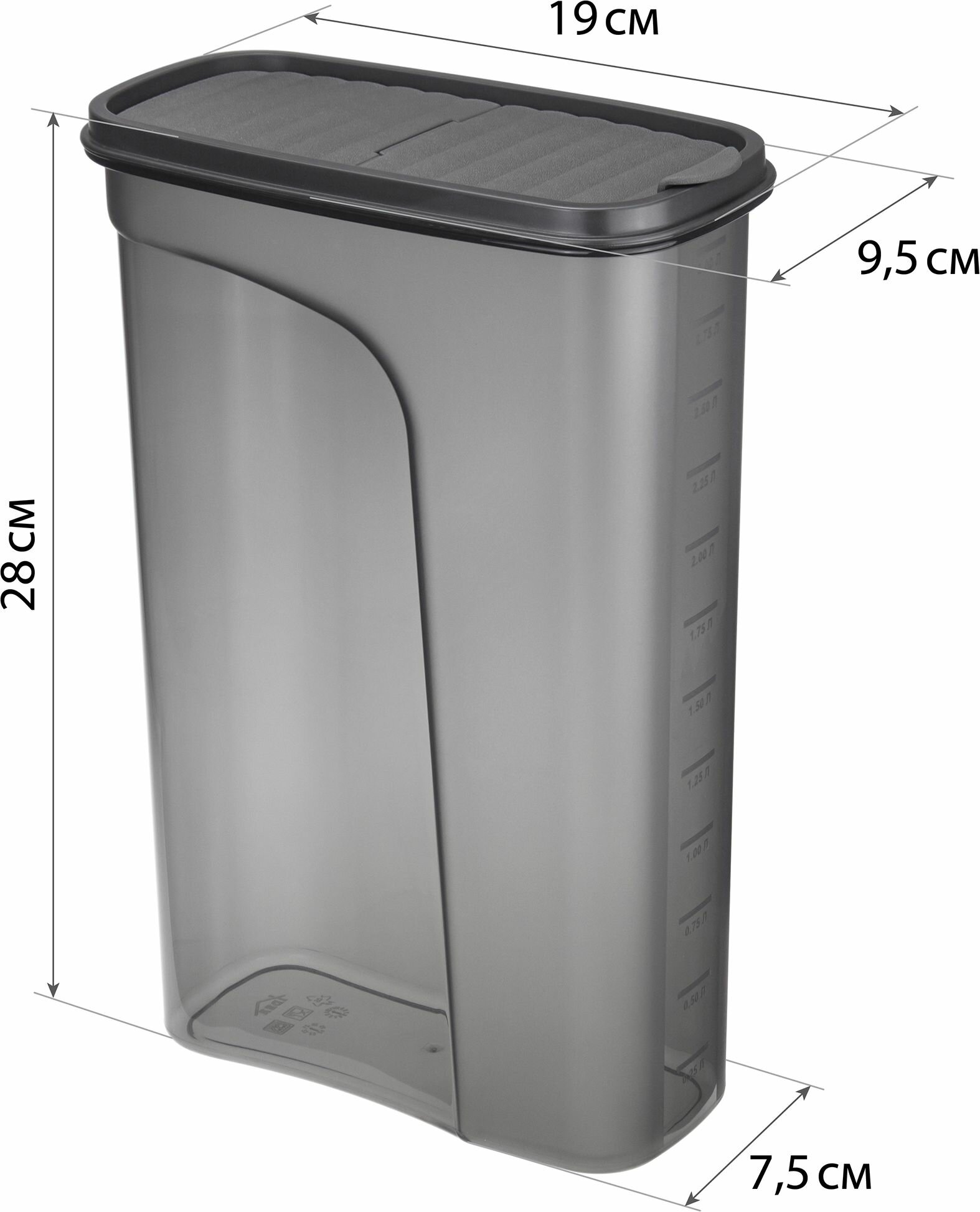 Емкость для сыпучих продуктов Idea Бест, 1 л, 9,5х19х9,5 см, цвет графитовый (М 1254)