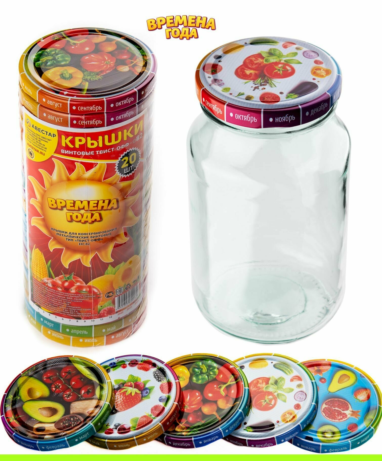 Крышки для консервирования металлические винтовые Твист-Офф 82мм "Времена Года" - 80 шт.