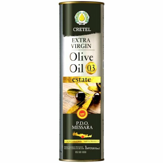Купить Оливковое масло нерафинированное высшего качества Extra Virgin Cretel P.D.O. Messara, премиум, кислотность 0,3-0,6, ж/б, 1 литр, Греция