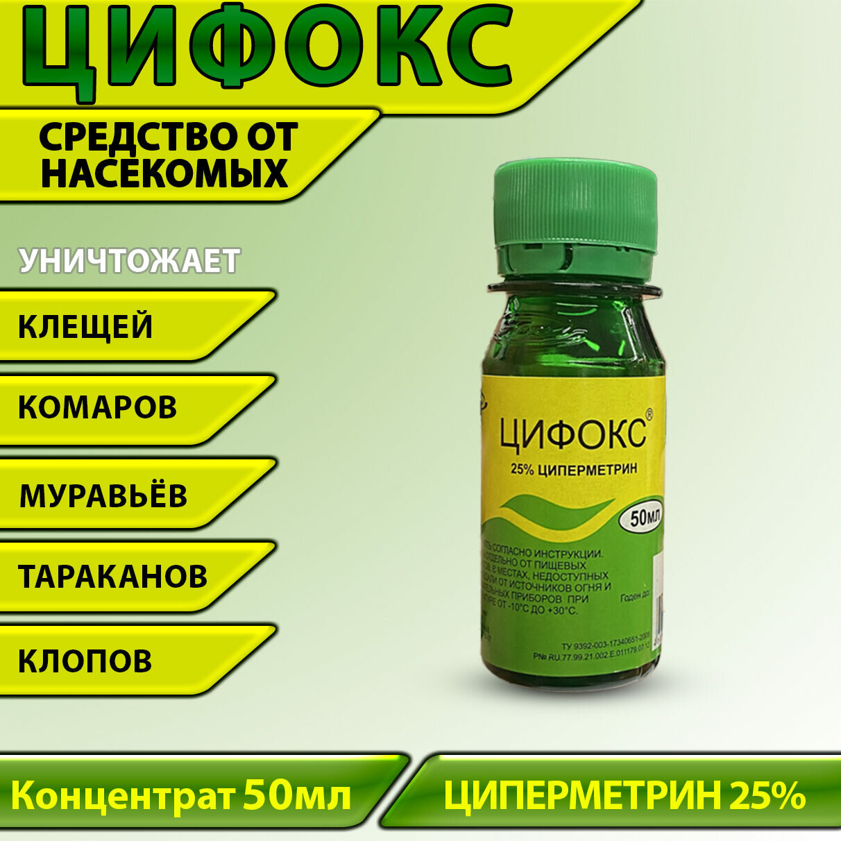 Цифокс средство от иксодовых клещей, комаров, мух, клопов, тараканов, блох, муравьев, 50 мл