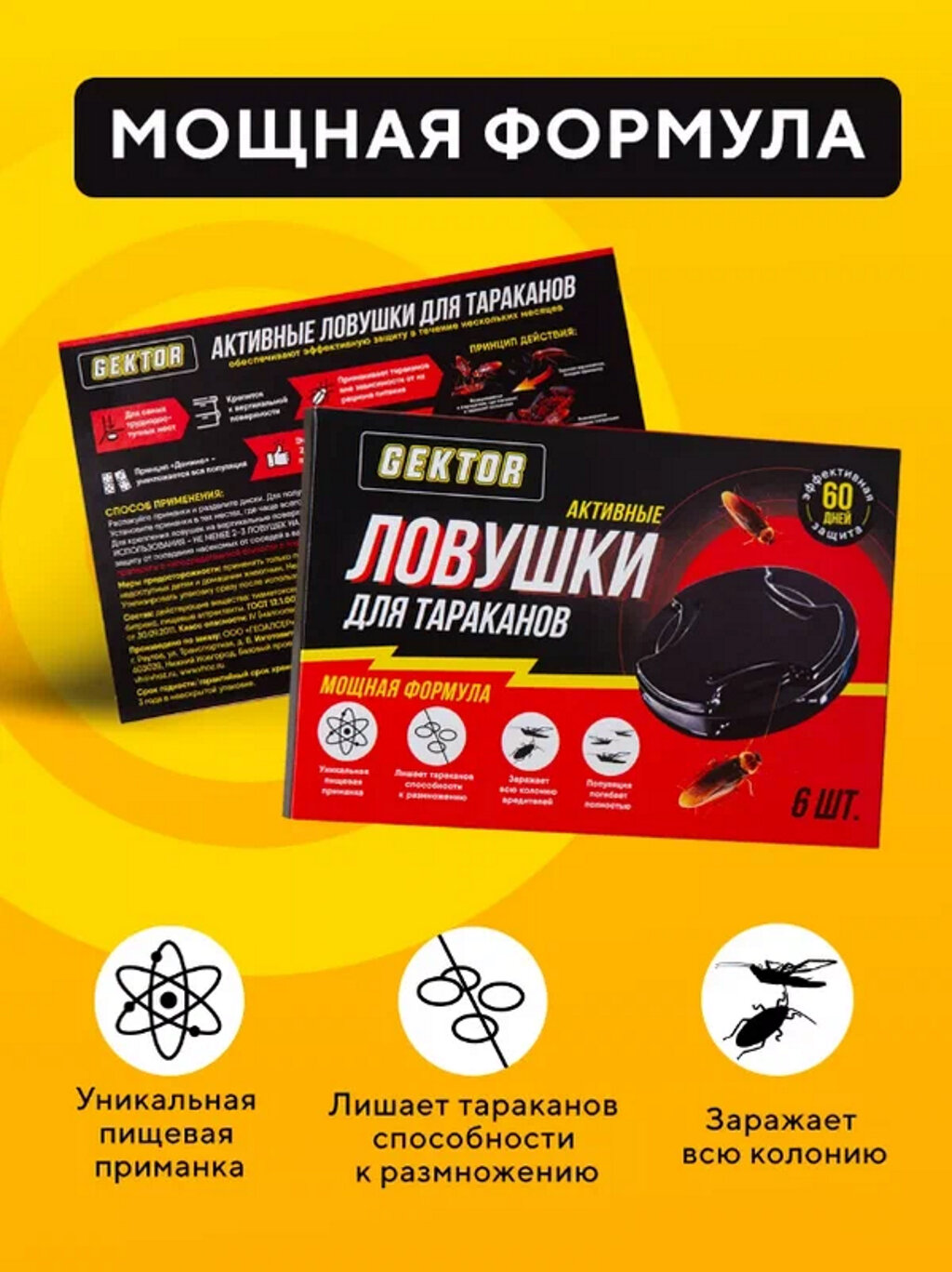 Купить Средство от тараканов Гектор/GEKTOR, Активные ловушки 6 шт, 60 дней защиты