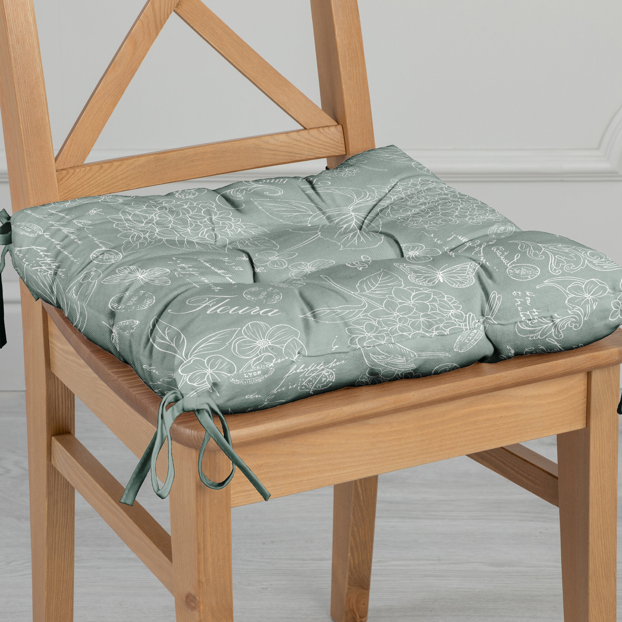 Фигурная декоративная трапециевидная подушка на стул с завязками ГрандСтиль