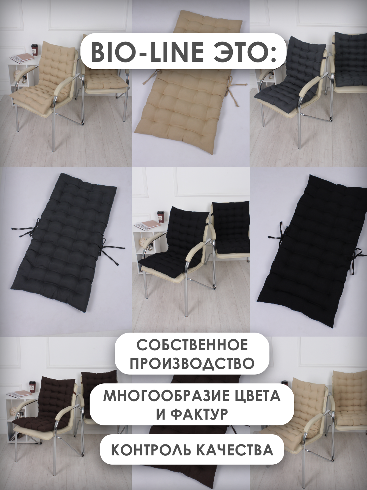 Подушка на стул со спинкой Bio-Line, матрас подушка для кресла, 85х42х5 см на резинке и с завязками, черн