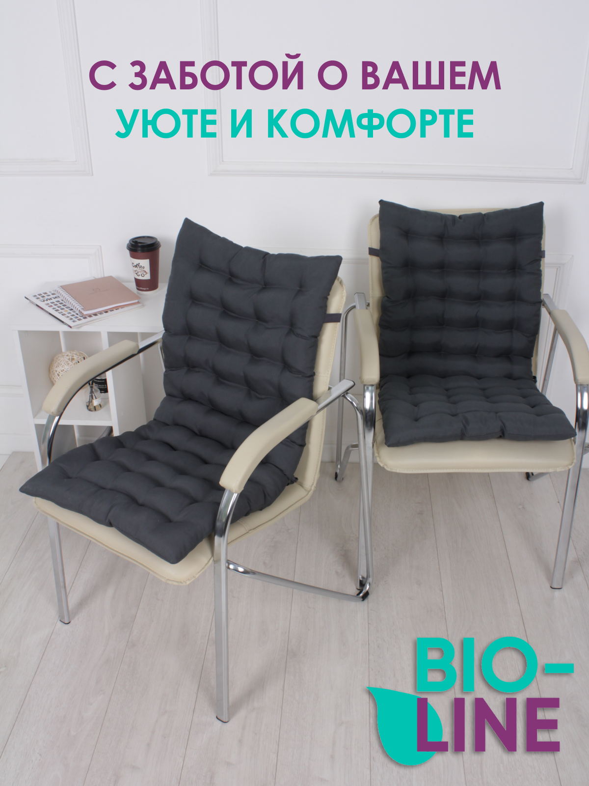 СохранитьПодушка на стул со спинкой Bio-Line, матрас подушка для кресла, 85х42х5 см на резинке и с завязками ,сер интересное: