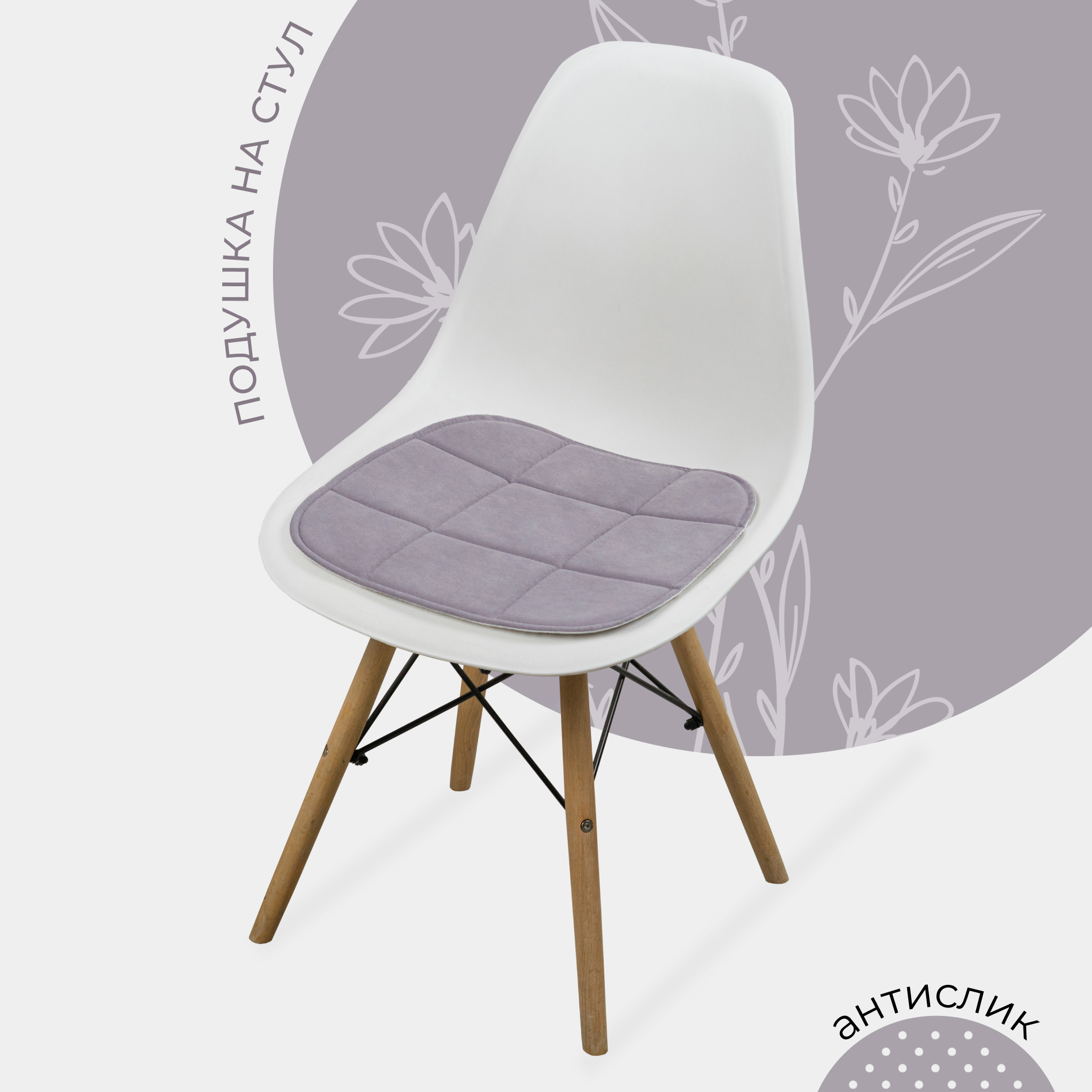 Подушка на стул из велюра, 39x40 см, противоскользящая, лаванда интересное: