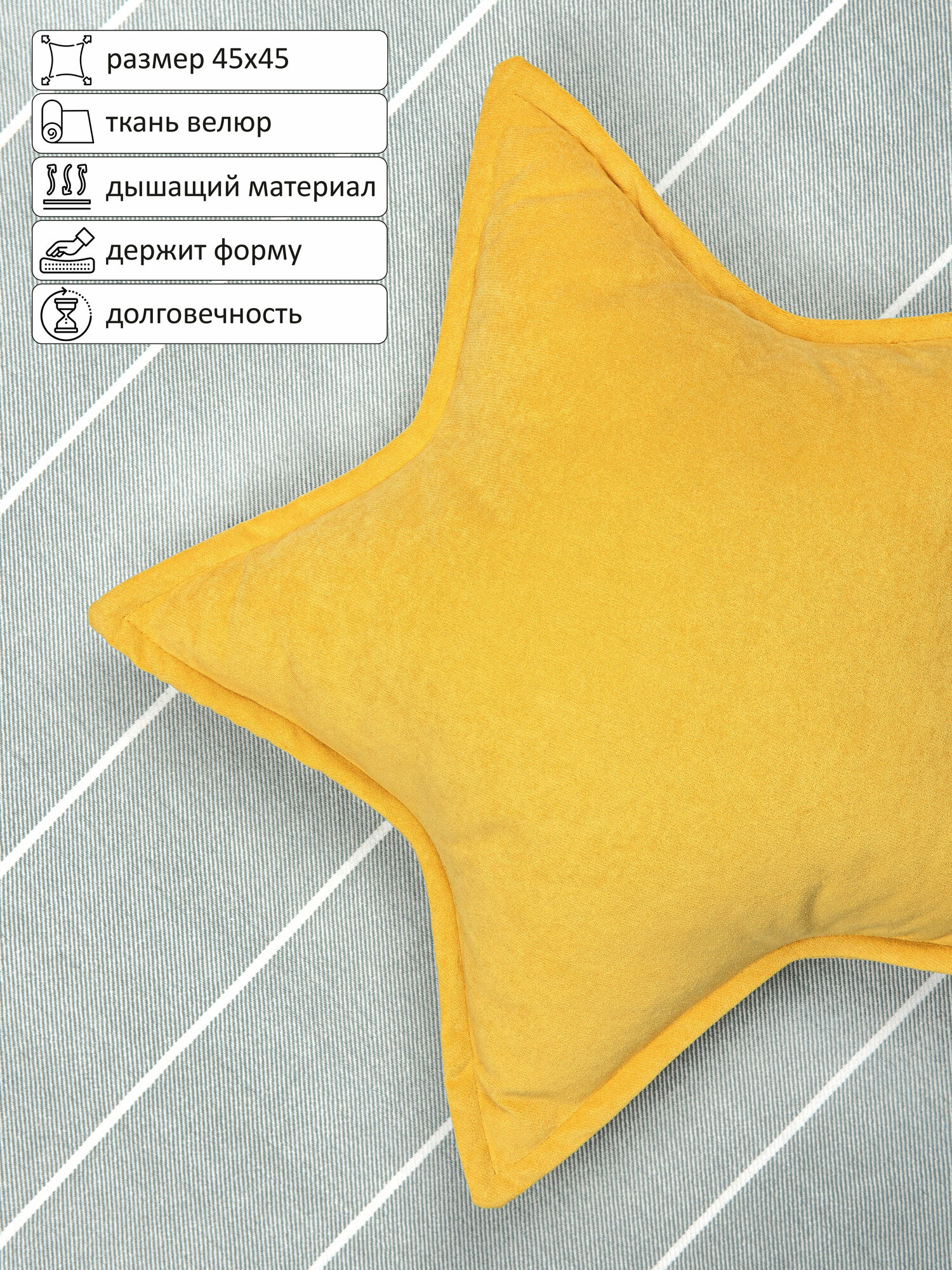 Ниже Вы можете прочитать отзывы на Подушка декоративная Звезда (звездочка) велюр, 45х45, цвет горчичный, ознакомится с подробными характеристиками, посмотреть интересные обзоры и фотографии на Подушка декоративная Звезда (звездочка) велюр, 45х45, цвет горчичный.