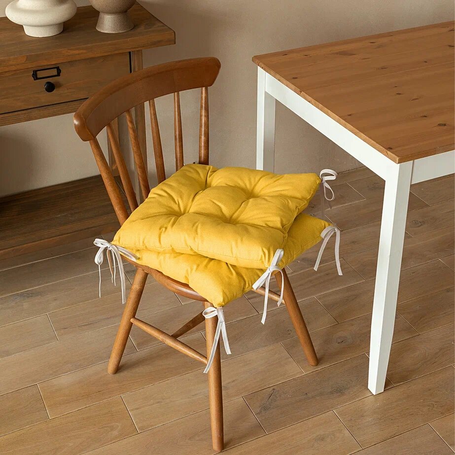 Комплект подушек на стул плоских 40х40 (2 шт) "Унисон" рис 30004-16 Basic желтый