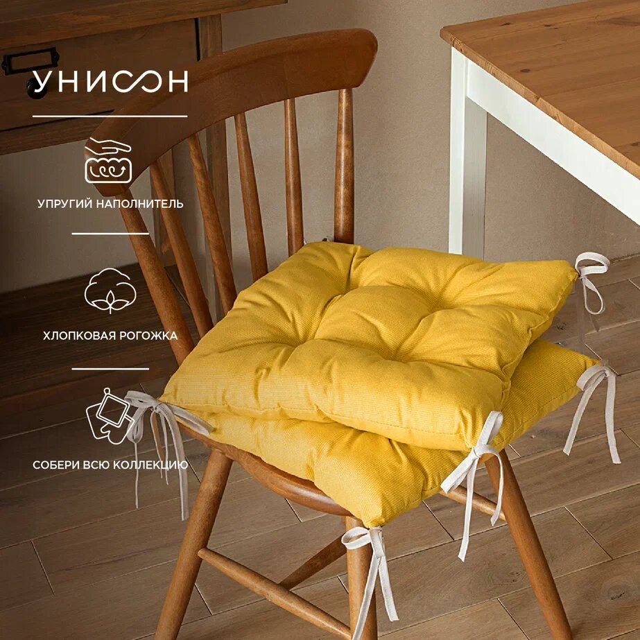 СохранитьКомплект подушек на стул с тафтингом квадратных 40х40 (2 шт) "Унисон" рис 30004-16 Basic желтый интересное: