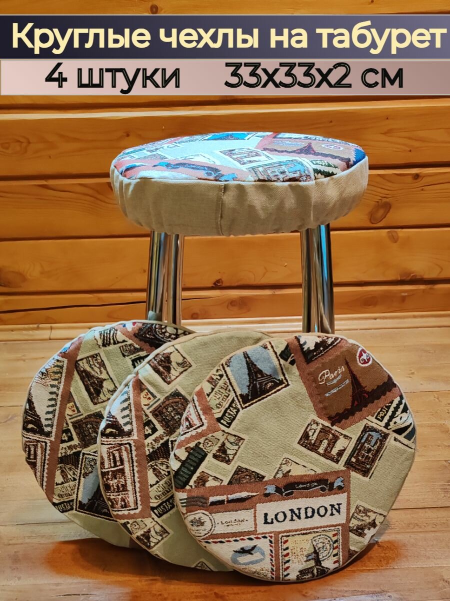 Натабуретники 4 штуки в комплекте 37x37 см/чехол на табурет 4 шт/ подушки на табурет на резинке/с поролоном/комплект подушек для дома/для дачи