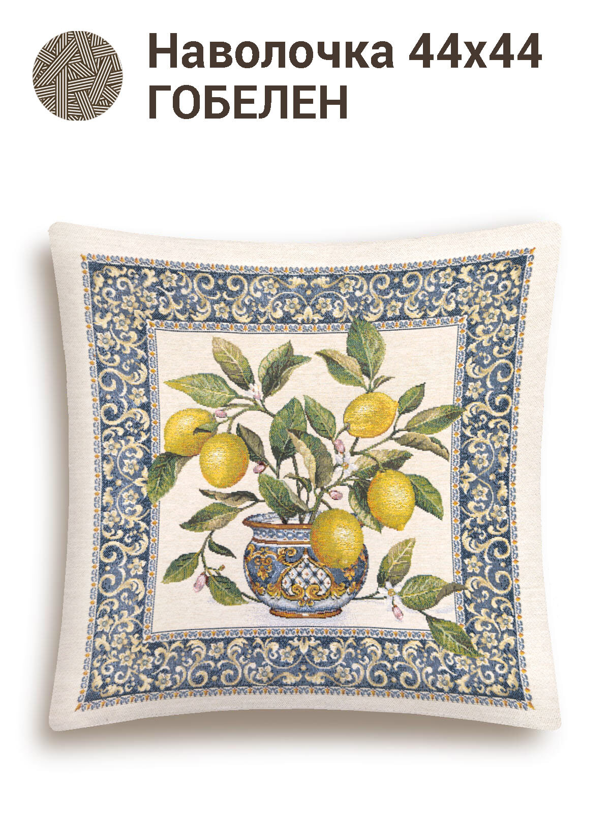 Наволочка гобелен Le Gobelin Изразцы лимоны бордюр 45x45 см