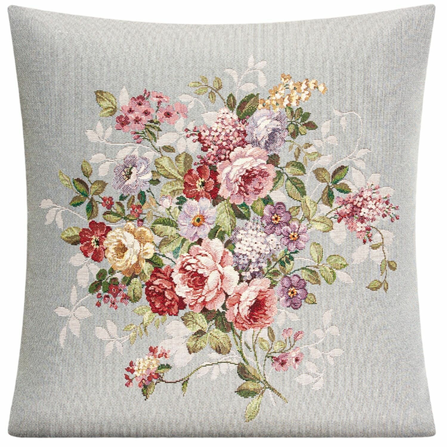 Наволочка гобелен Le Gobelin Розы и гортензии Серый 45х45 см