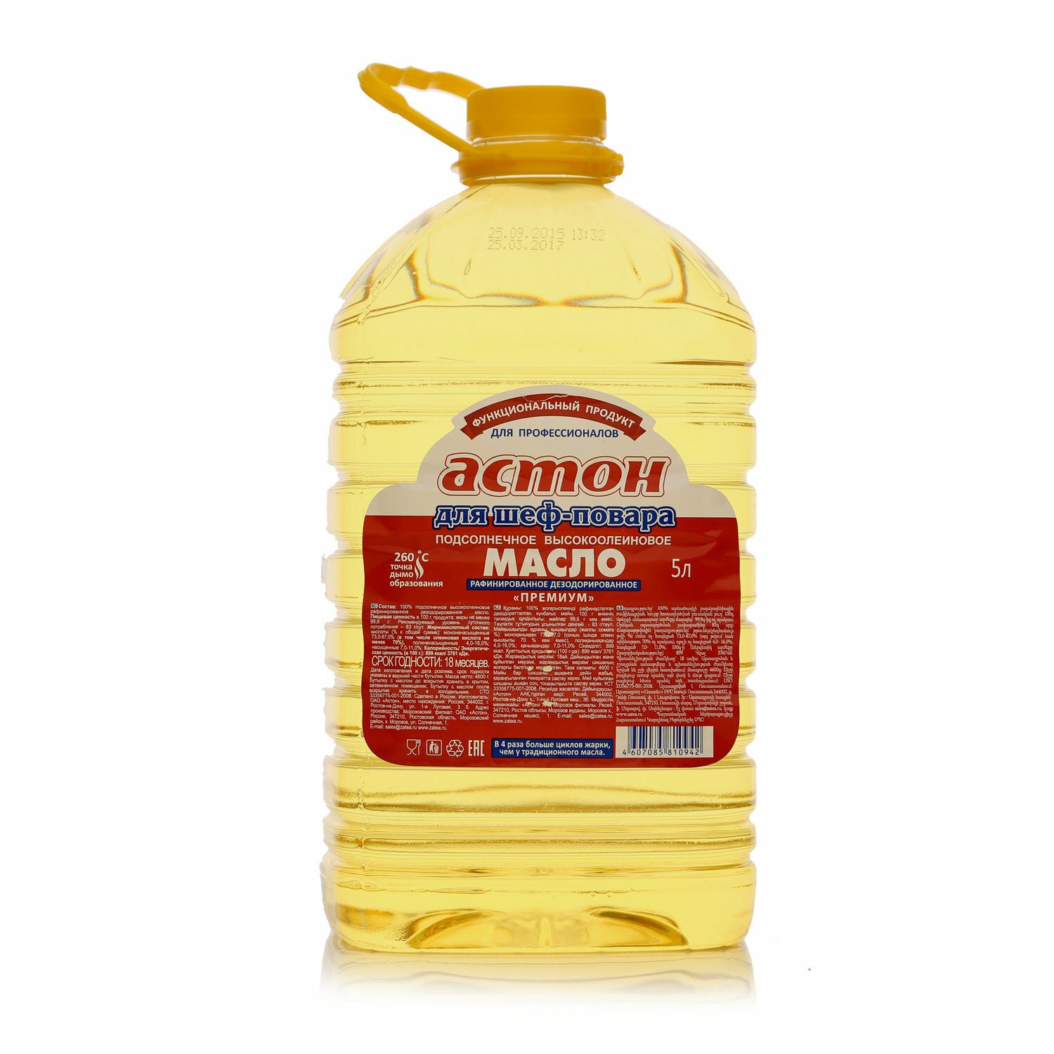 Масло Астон подсолнечное высоколеиновое рафинированное дезодорированное 5 л интересное: