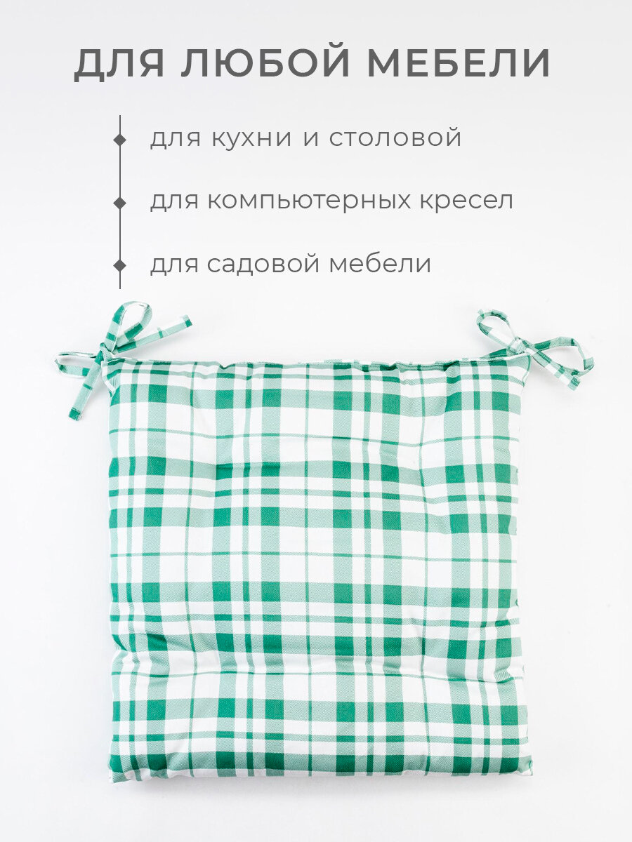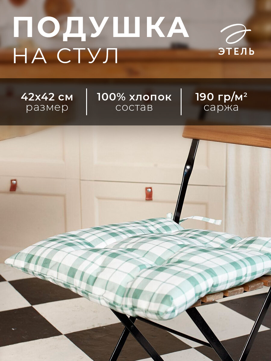 Купить Сидушка на стул "Этель"Eucalyptus (клетка) 42х42см, 100% хлопок, саржа 190 г/м2