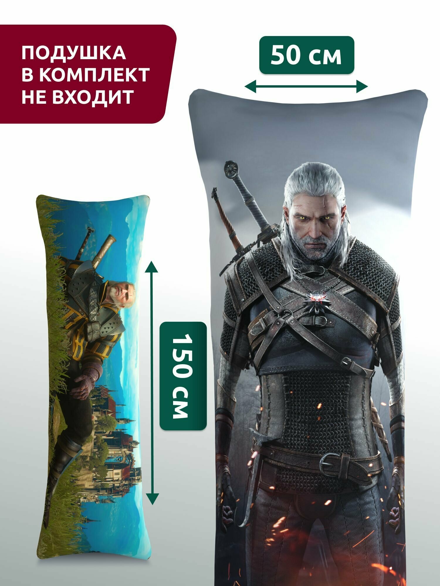 Наволочка для дакимакуры длинная с принтом Геральт Ведьмак 150х50 см / чехол на подушку для обнимашек