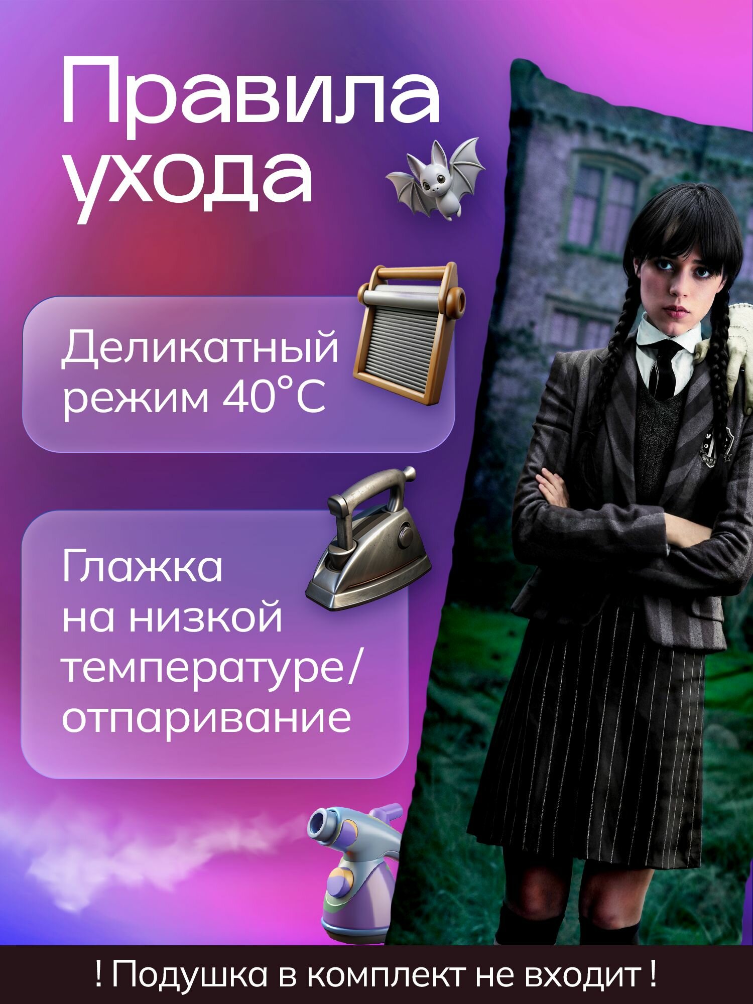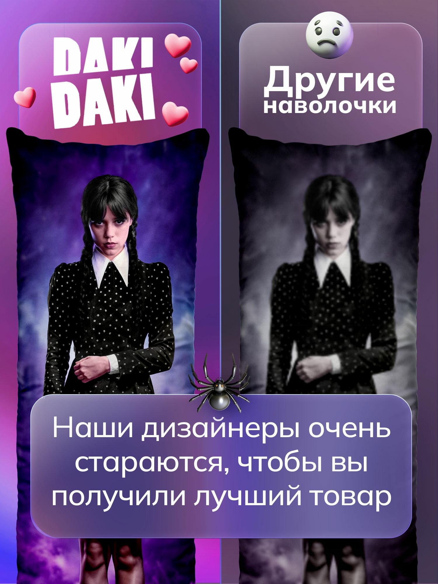 СохранитьНаволочка для дакимакуры длинная с принтом Уэнсдэй Аддамс Wednesday Дженна Ортега 150х50 см / чехол на подушку для обнимашек интересное: