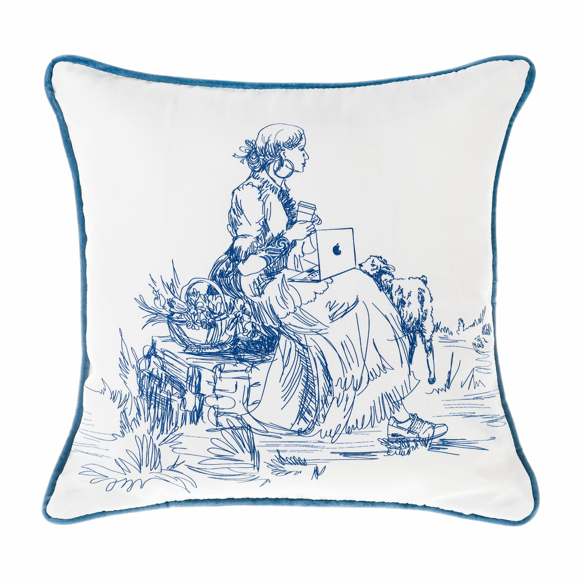 Декоративная подушка Klassika 2.0 40х40 см., на потайной молнии, цвет белый синий интересное: