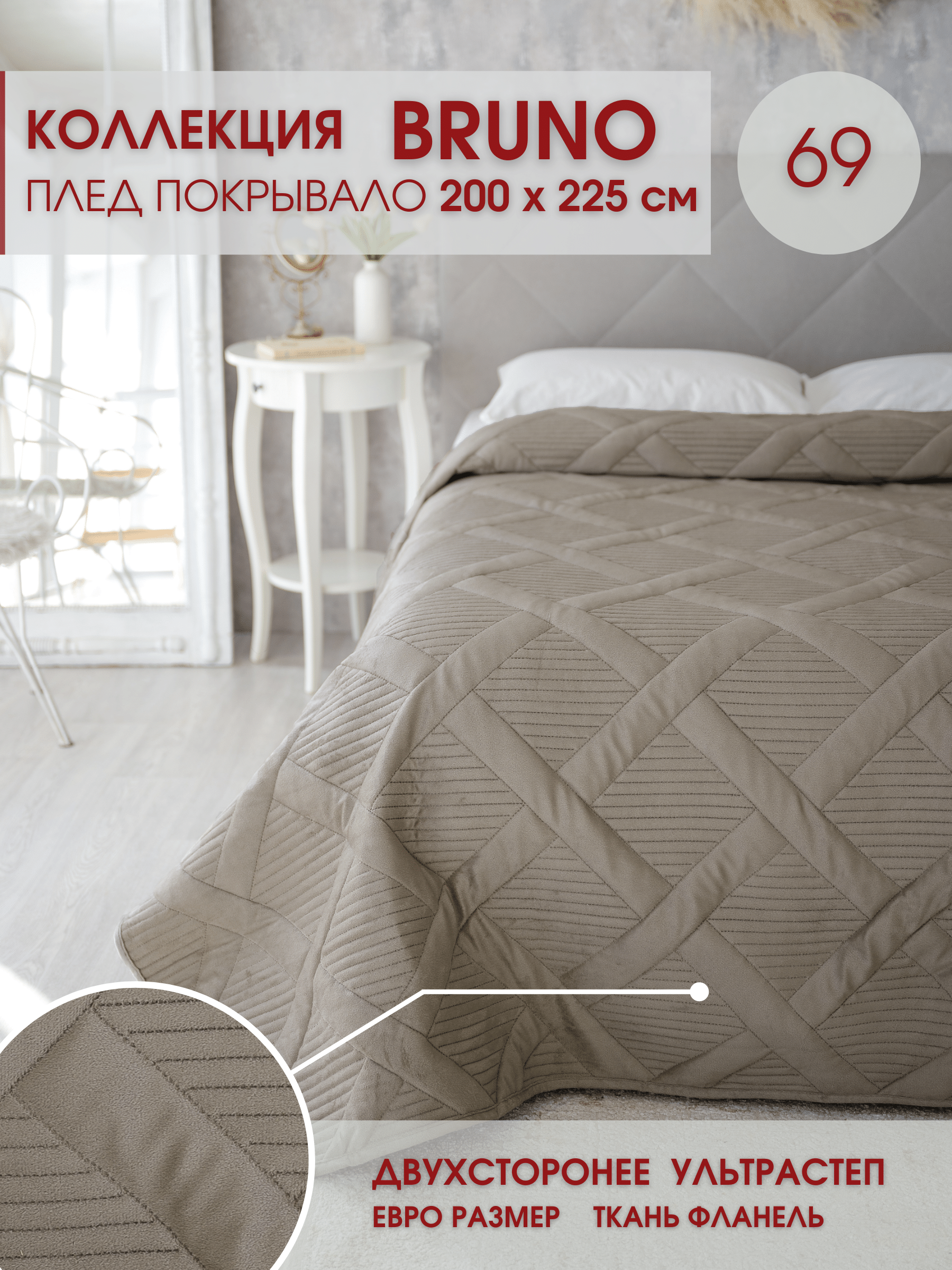 Ниже Вы можете прочитать отзывы на Покрывало стеганое на кровать Bruno Бруно 69 200х225 / 200х230 см, ознакомится с подробными характеристиками, посмотреть интересные обзоры и фотографии на Покрывало стеганое на кровать Bruno Бруно 69 200х225 / 200х230 см.