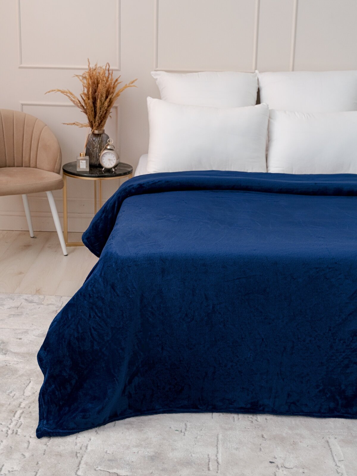 Купить Плед 150х200 однотонный Павлина Королевский синий, 1.5 спальный, полуторный
