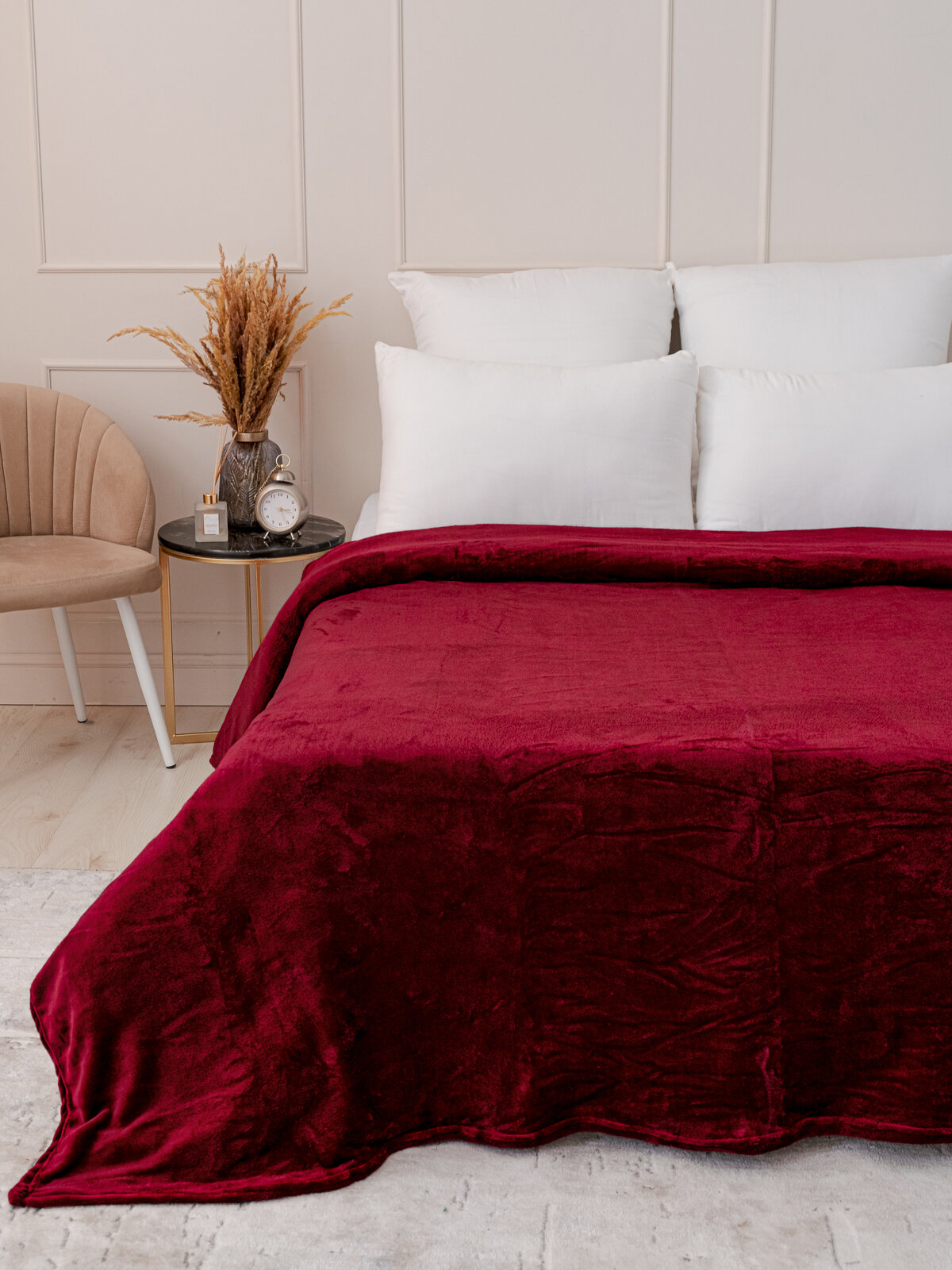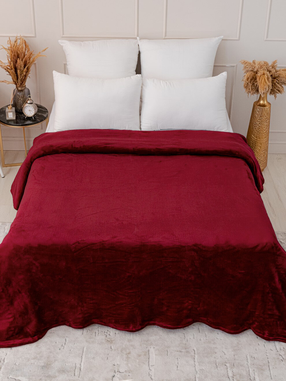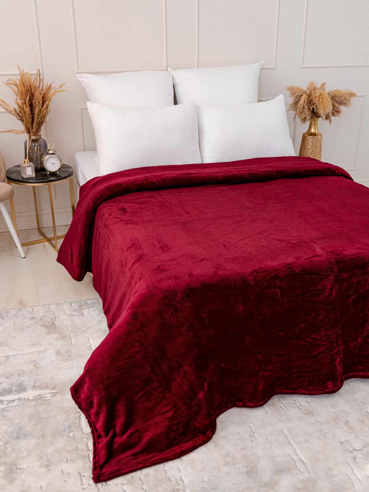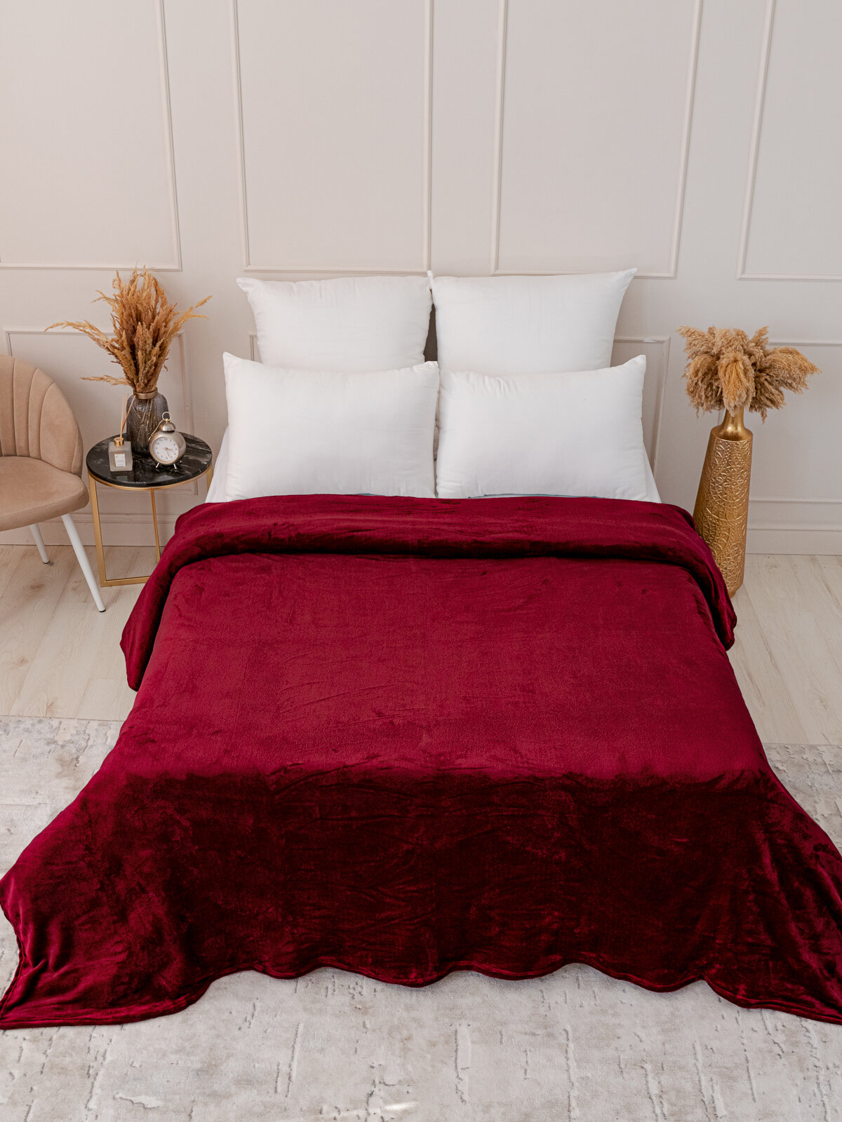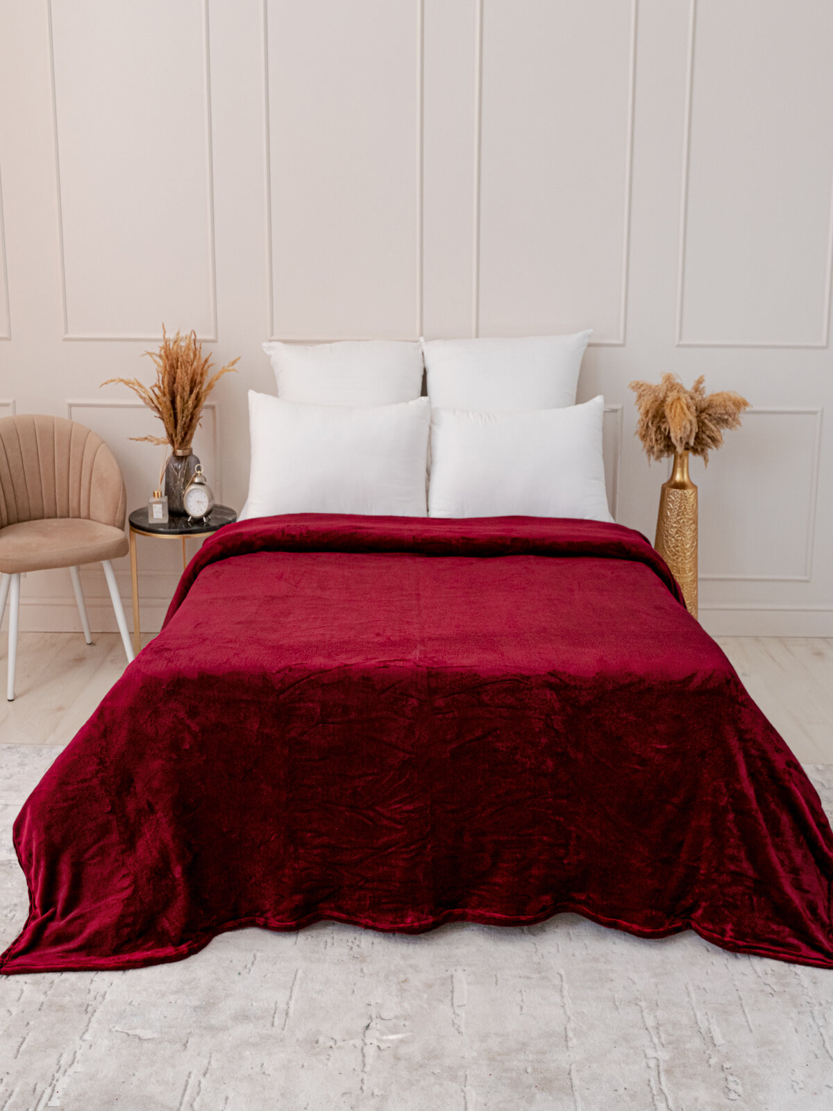 Плед 150х200 однотонный Павлина винный, 1.5 спальный, полуторный