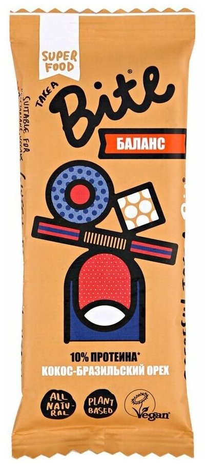 BITE Батончик Кокос-Бразильский Орех (Баланс) Фруктово-Ореховый 45гр. интересное: