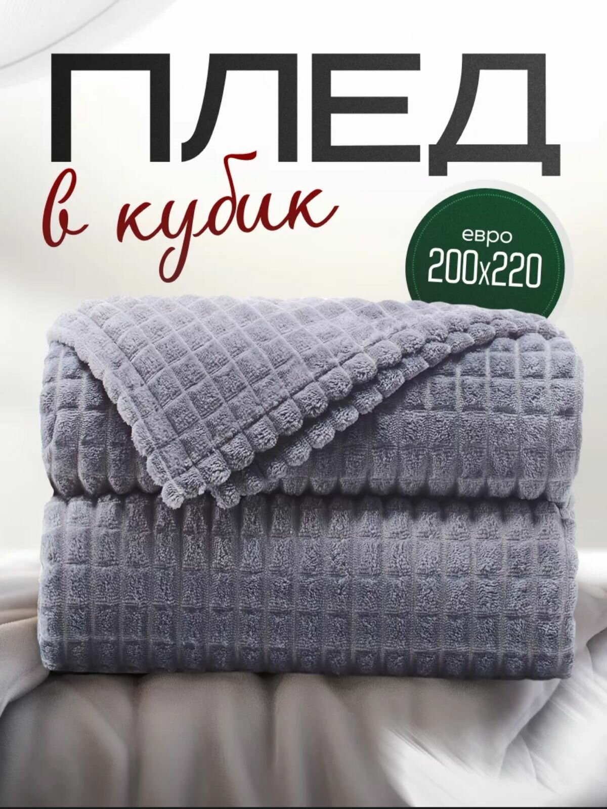 Плед-покрывало кубик Велсофт 200 x 220 см, евро флисовый серый интересное: