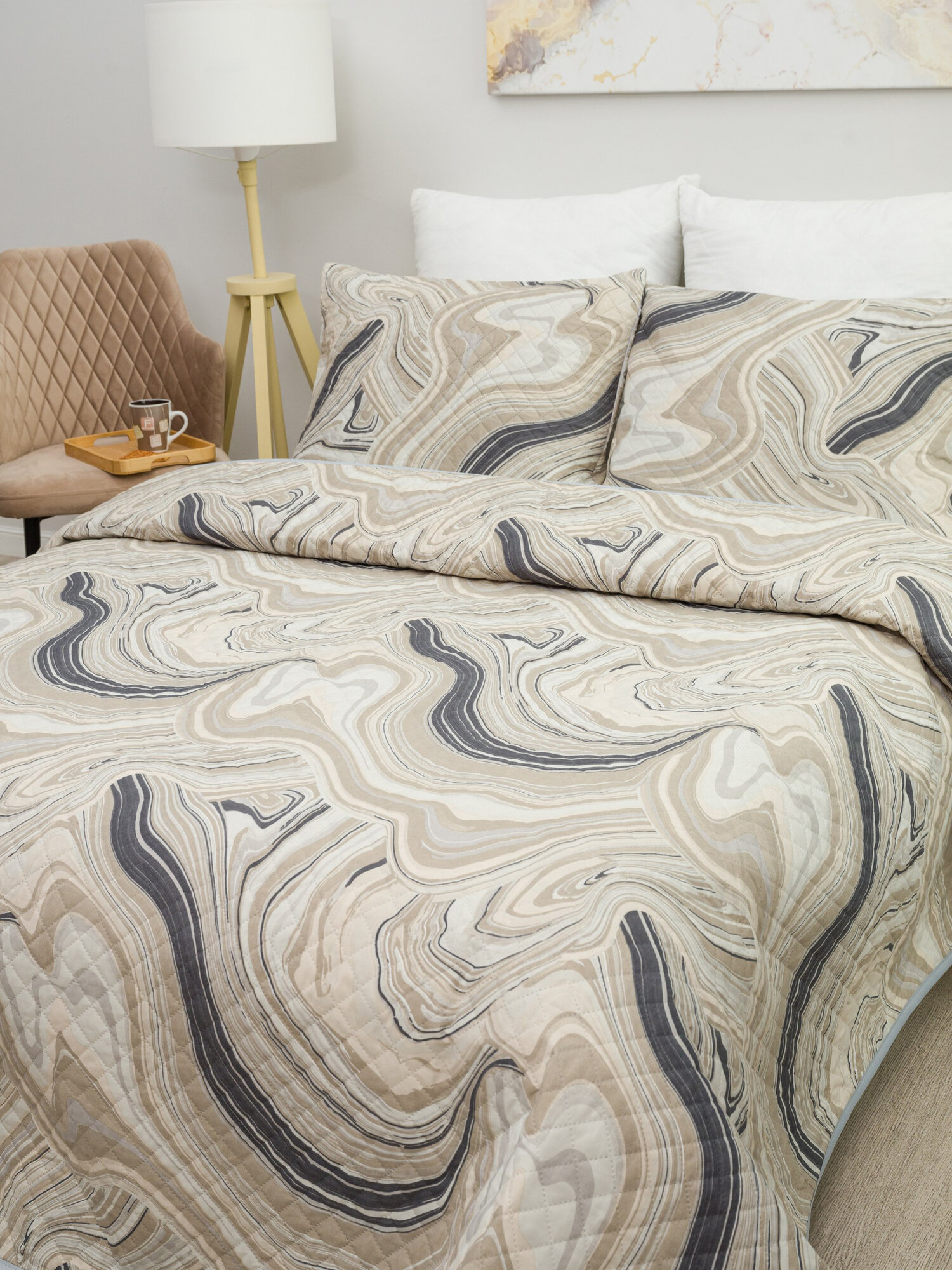 Покрывало на кровать и диван Вселенная текстиля Полисатин № 12970/2, Ультрастеп двухстороннее 240x210 см Евро