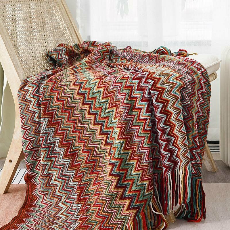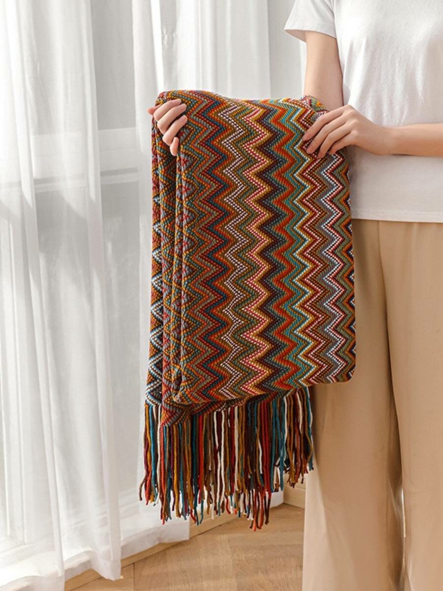 Купить Плед для пикников "The Pled", 130 х 170 см, разноцветный, с бахромой и оттенком бургунди