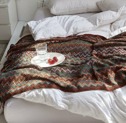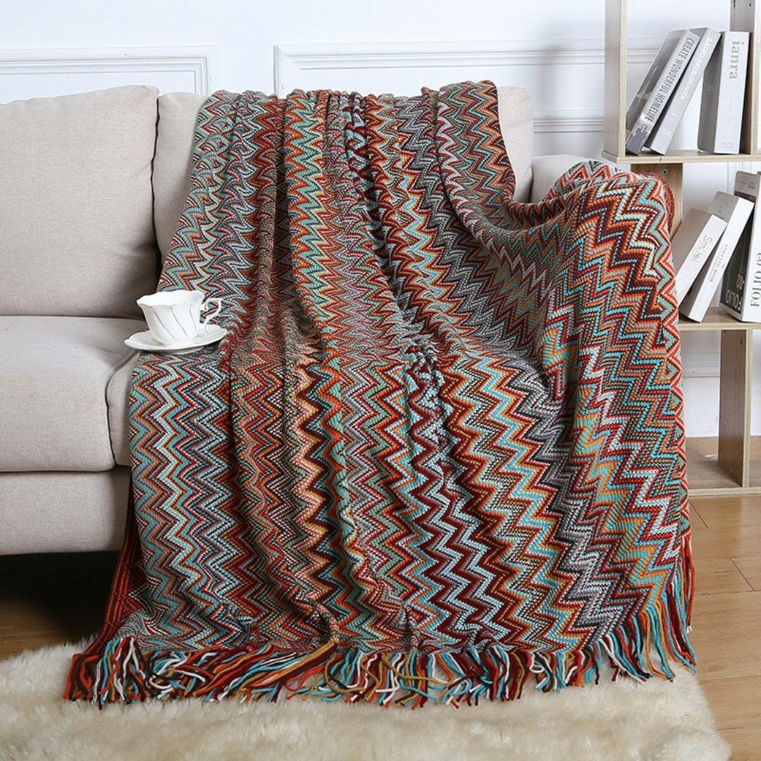 Плед для пикника "The Pled" , 130х170 , разноцветный, вязанный , с бахромой, синий.