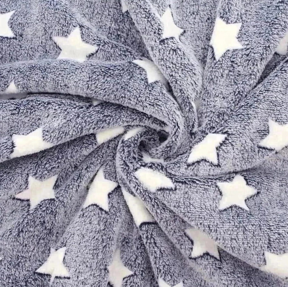 Купить Флисовый плед покрывало 180 х 200, серый со звездами, легкий и тонкий