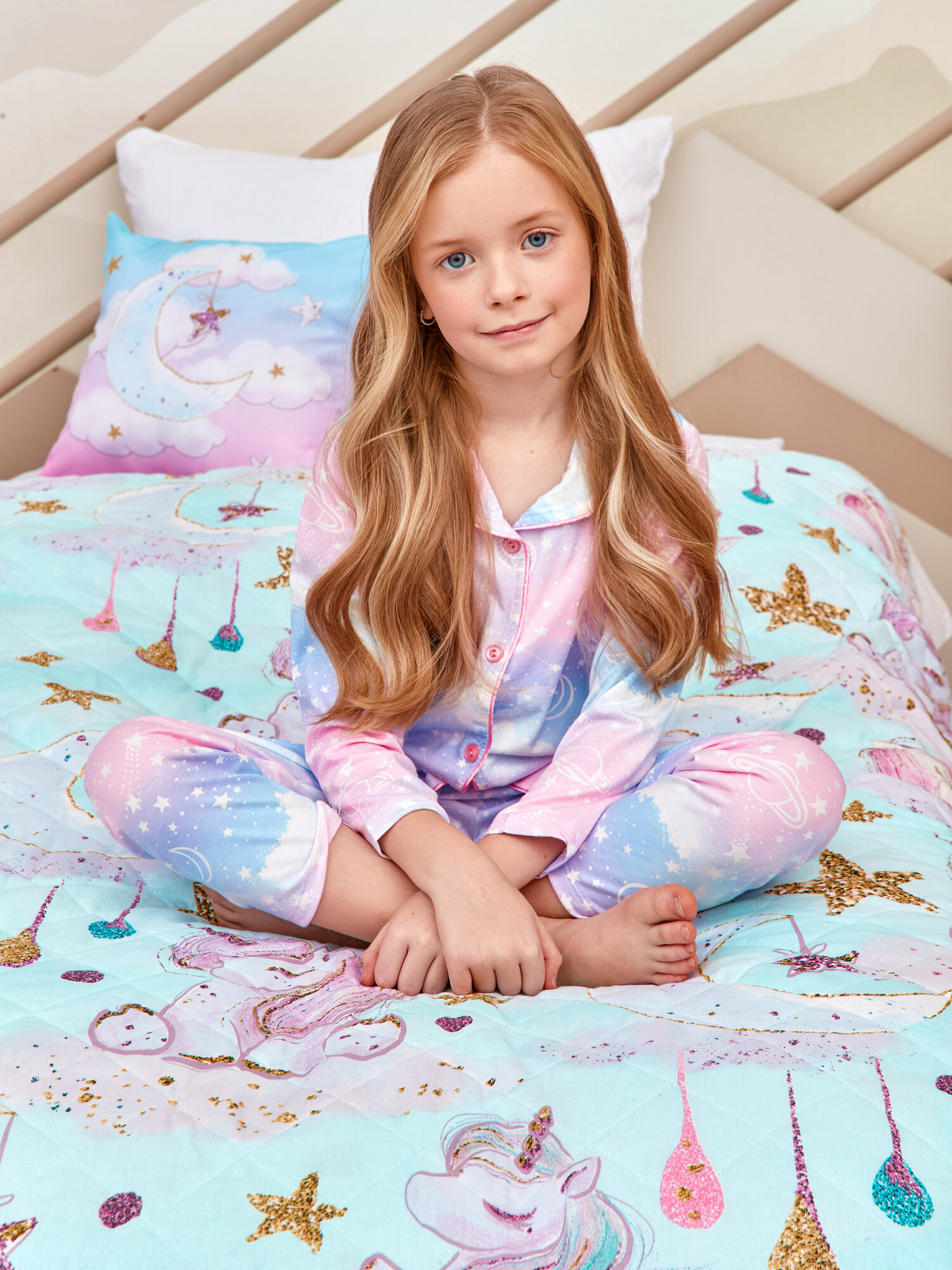 СохранитьДетское стеганное покрывало / покрывало на детскую кровать размер 145х200 см "Juno", Сказочные единороги 13249-1 интересное: