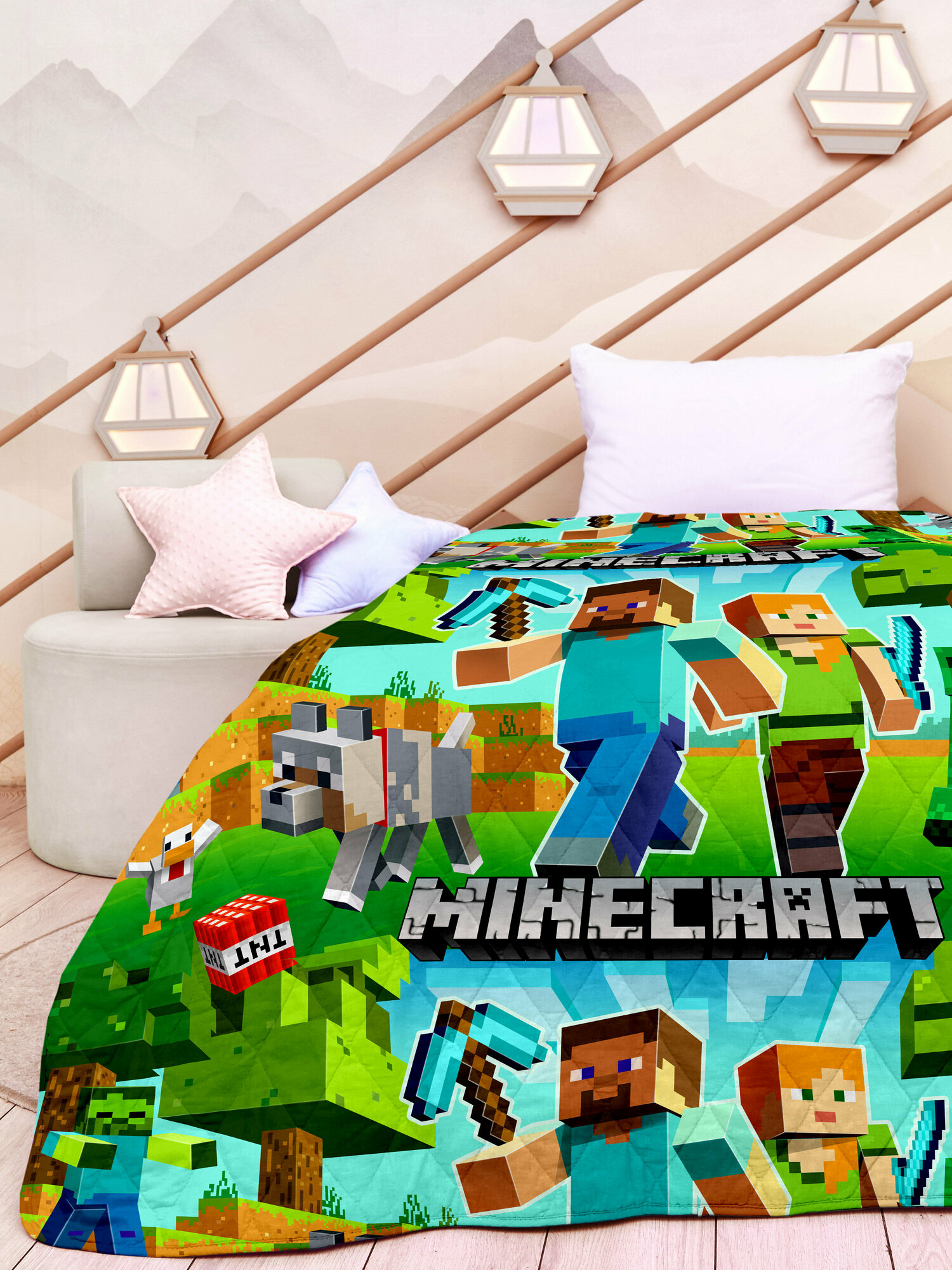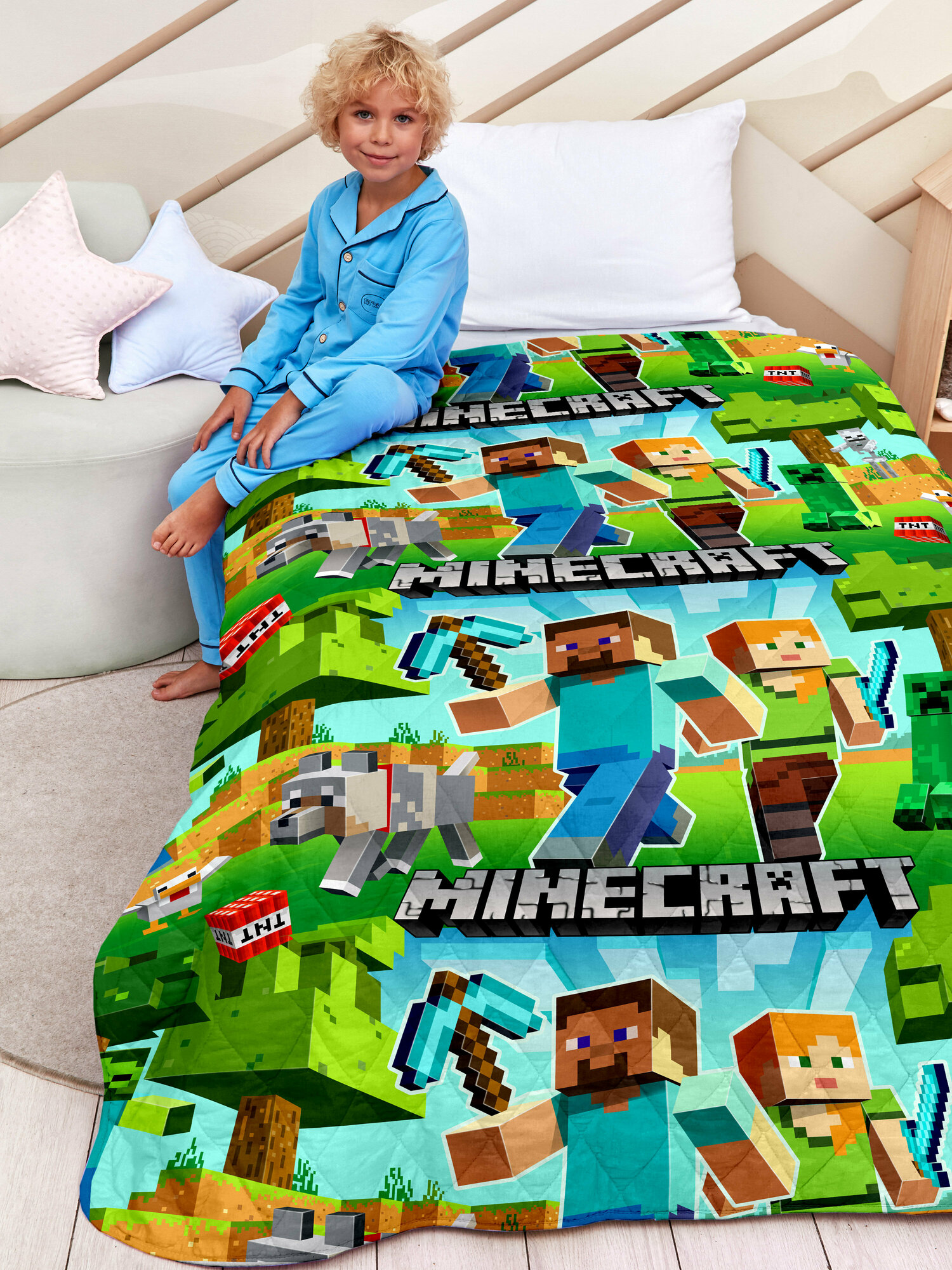 Покрывало стеганое детское "Juno" 145х200 Крипер и Скелет 16576-1