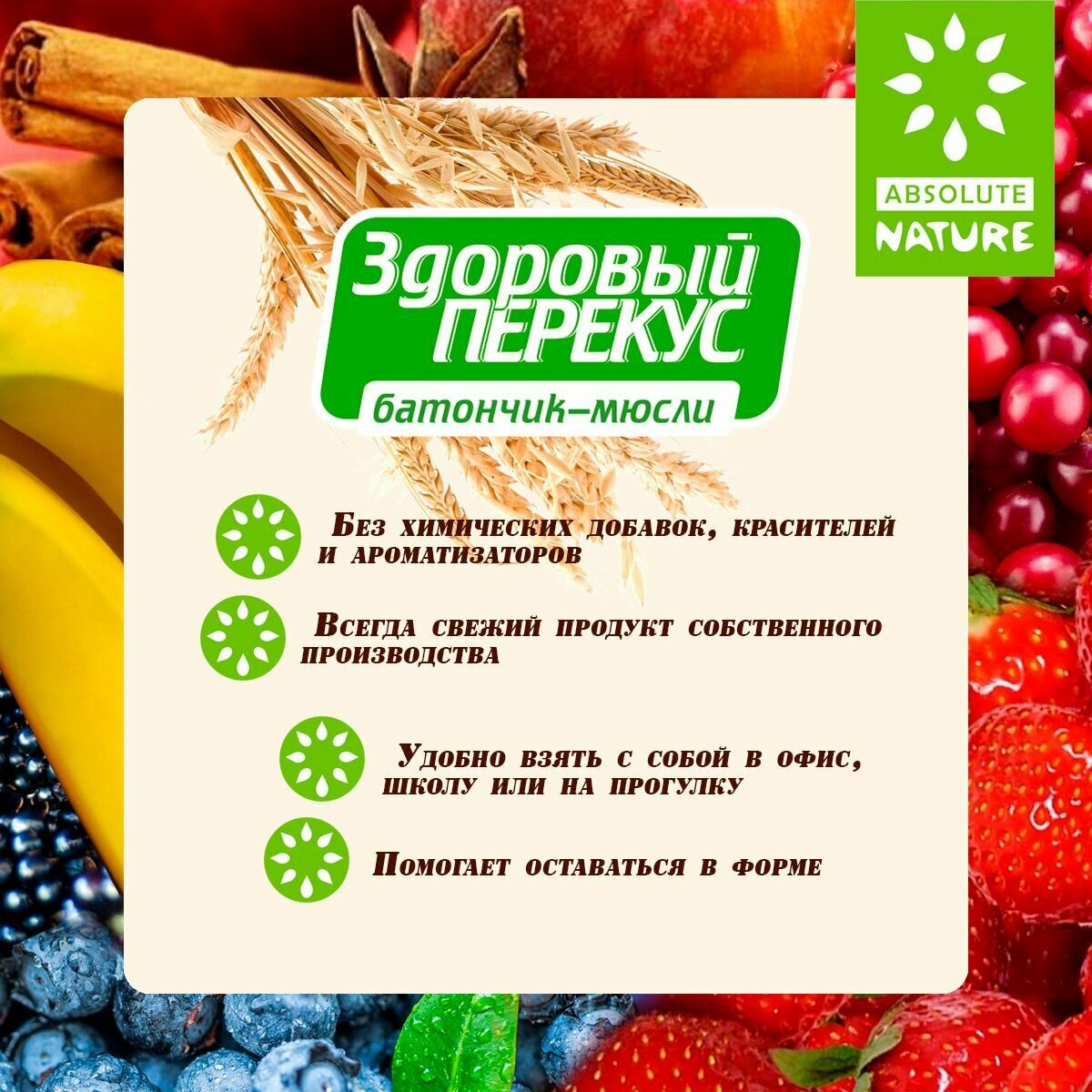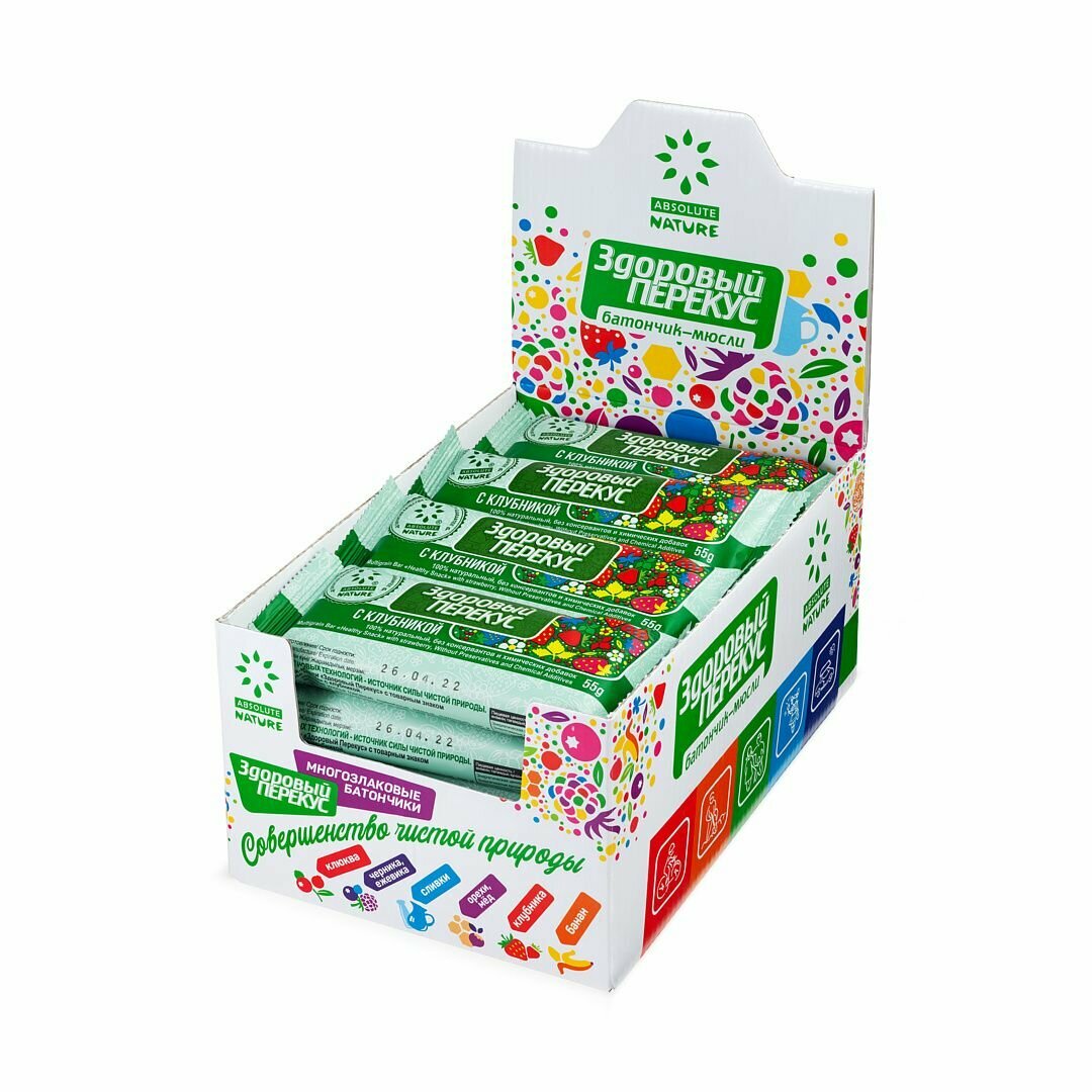 Злаковый батончик Absolute NATURE Здоровый перекус без сахара с клубникой