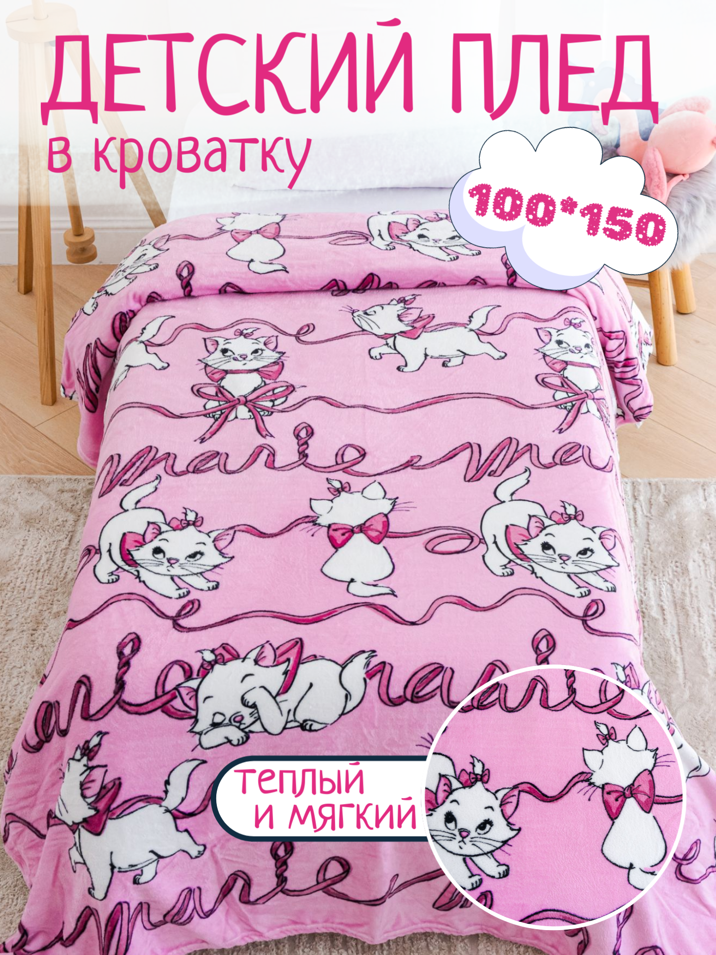 Плед 100х150 Павлинка Кошка Мари, 1- спальный, розовый интересное: