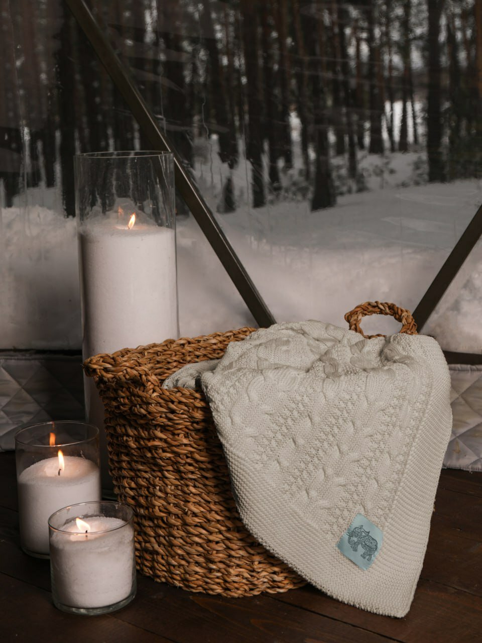 Плед 180х220, вязаный, Warm Whiff, белый, хлопок, покрывало на кровать, на диван, на кресло, в подарочной коробке