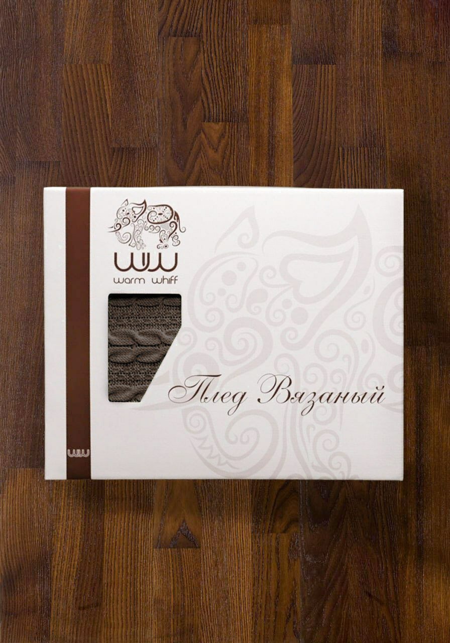 Купить Плед 180х220, вязаный, Warm Whiff, коричневый, хлопок, покрывало на кровать, на диван, на кресло, в подарочной коробке
