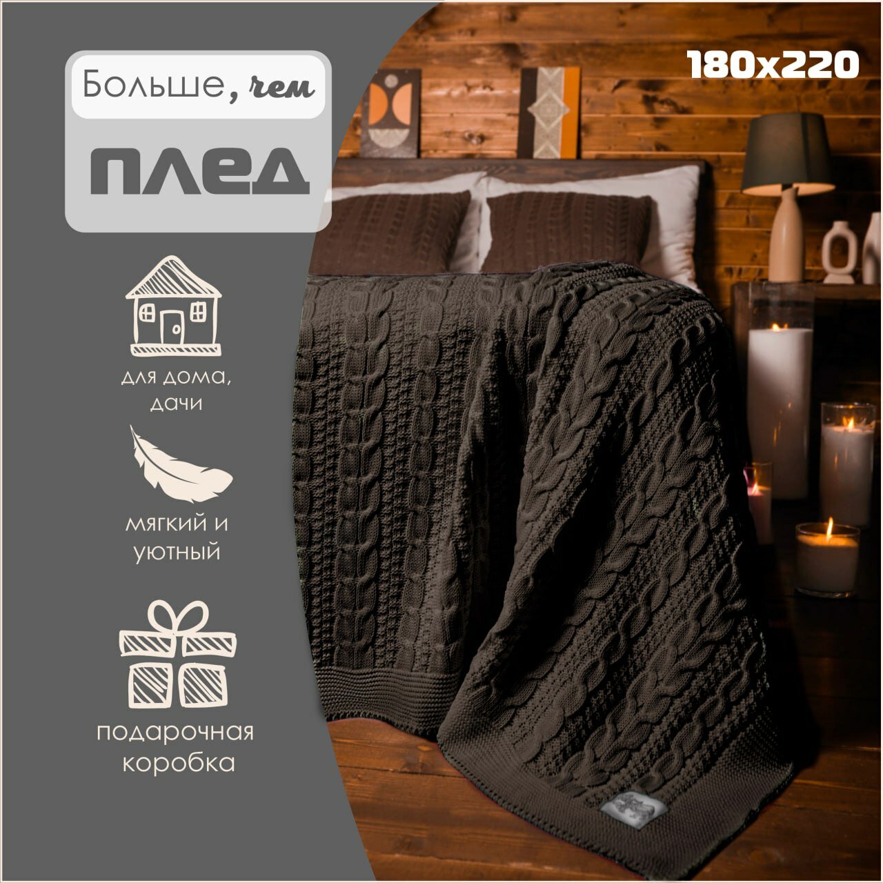 СохранитьПлед 180х220, вязаный, Warm Whiff, коричневый, хлопок, покрывало на кровать, на диван, на кресло, в подарочной коробке интересное: