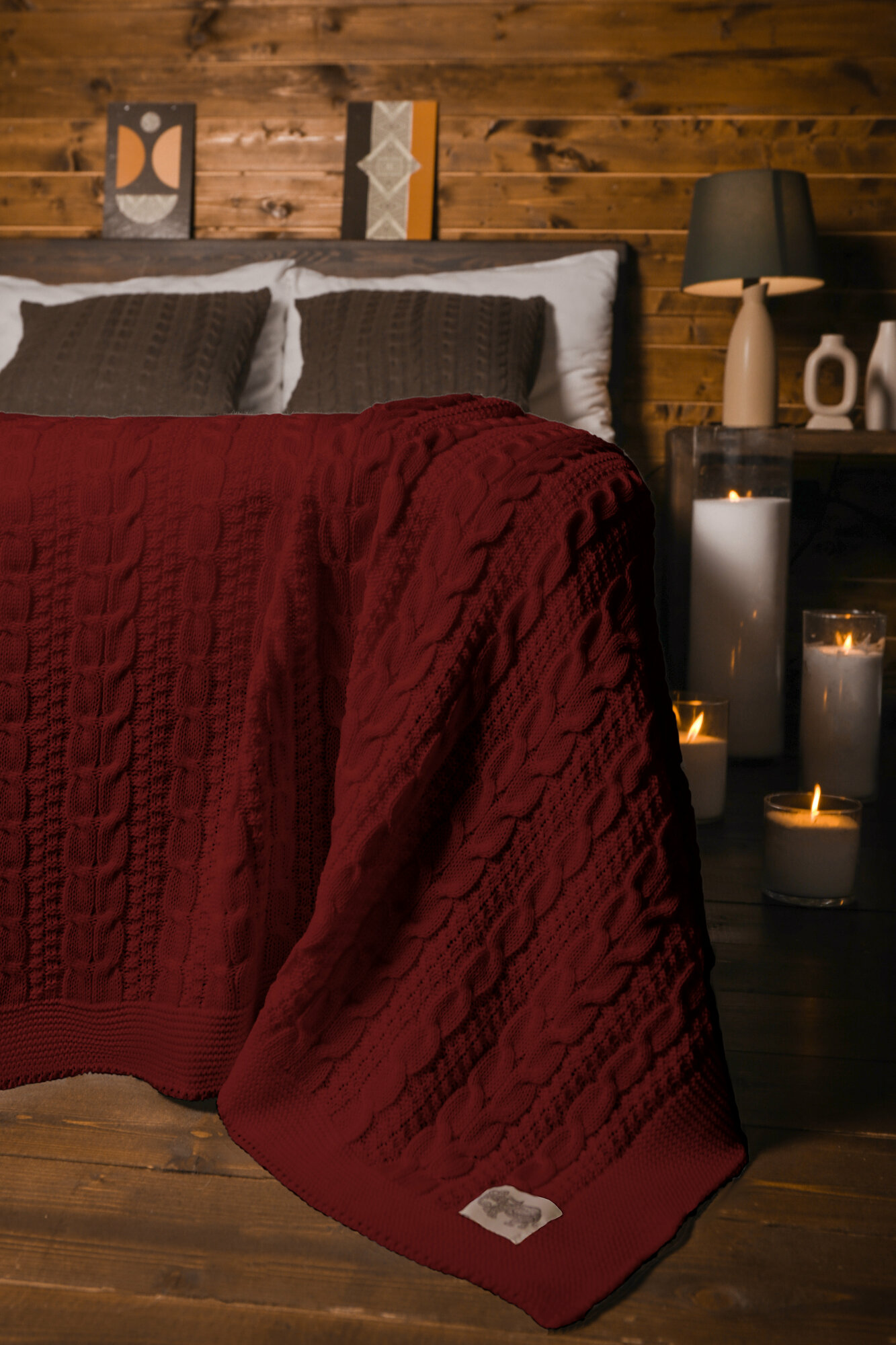 Купить Плед 180х220, вязаный, Warm Whiff, бордовый, хлопок, покрывало на кровать, на диван, на кресло, в подарочной коробке