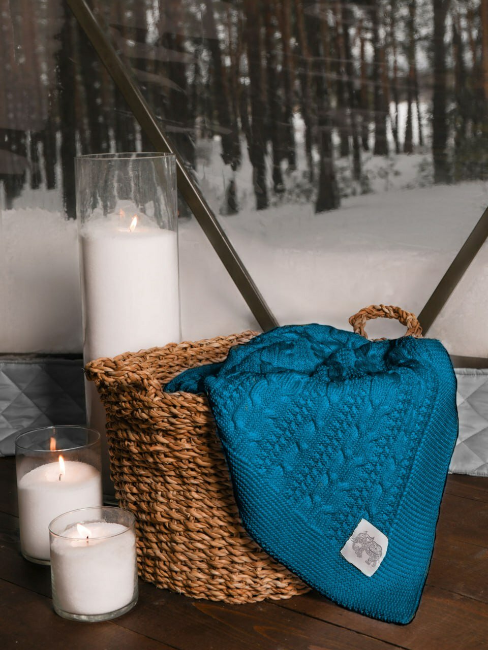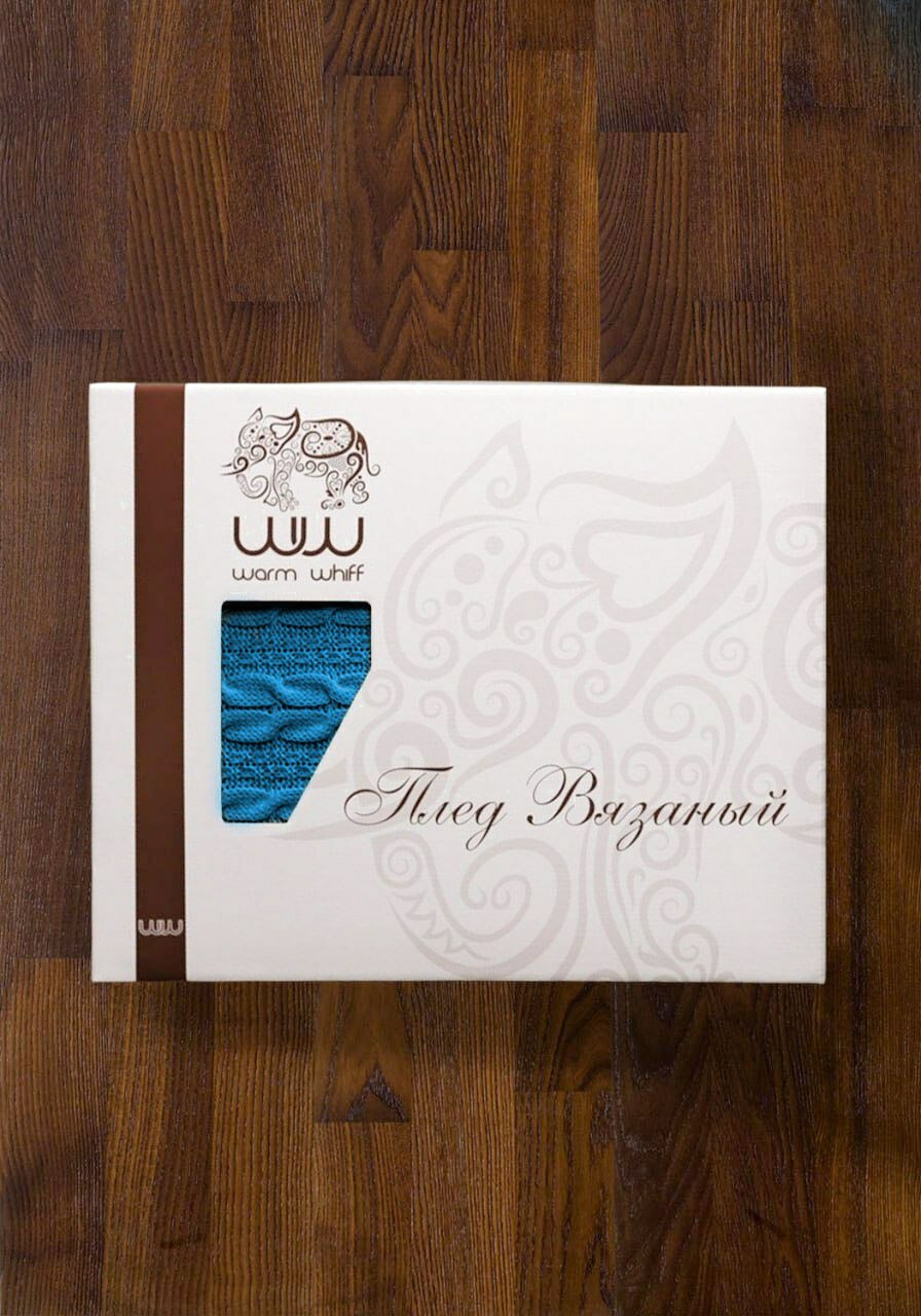 Купить Плед 180х220, вязаный, Warm Whiff, голубой, хлопок, покрывало на кровать, на диван, на кресло, в подарочной коробке
