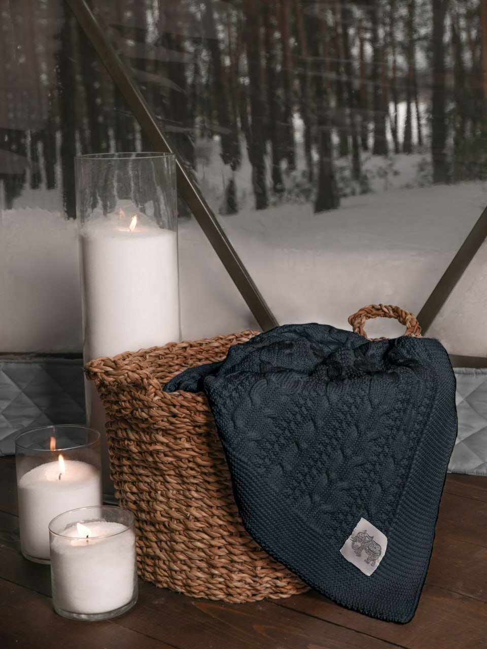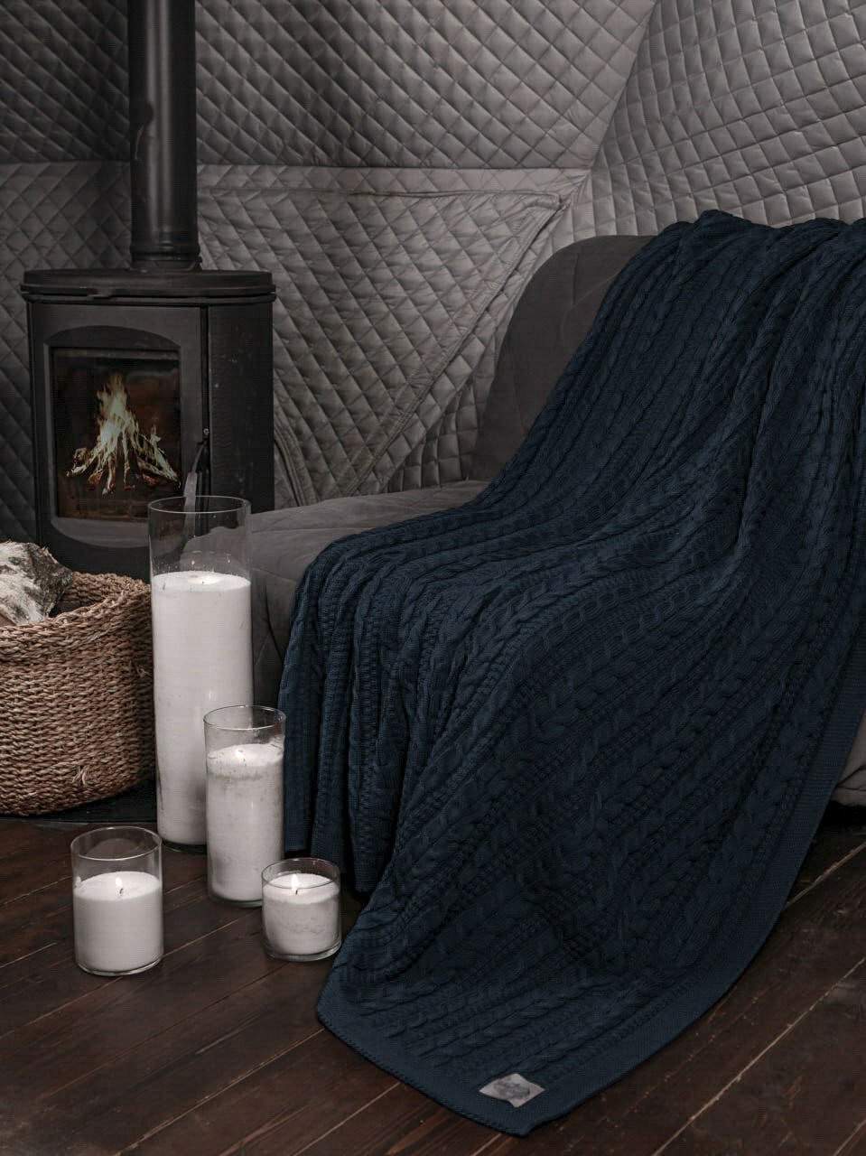 Купить Плед 180х220, вязаный, Warm Whiff, темно-синий, хлопок, покрывало на кровать, на диван, на кресло, в подарочной коробке