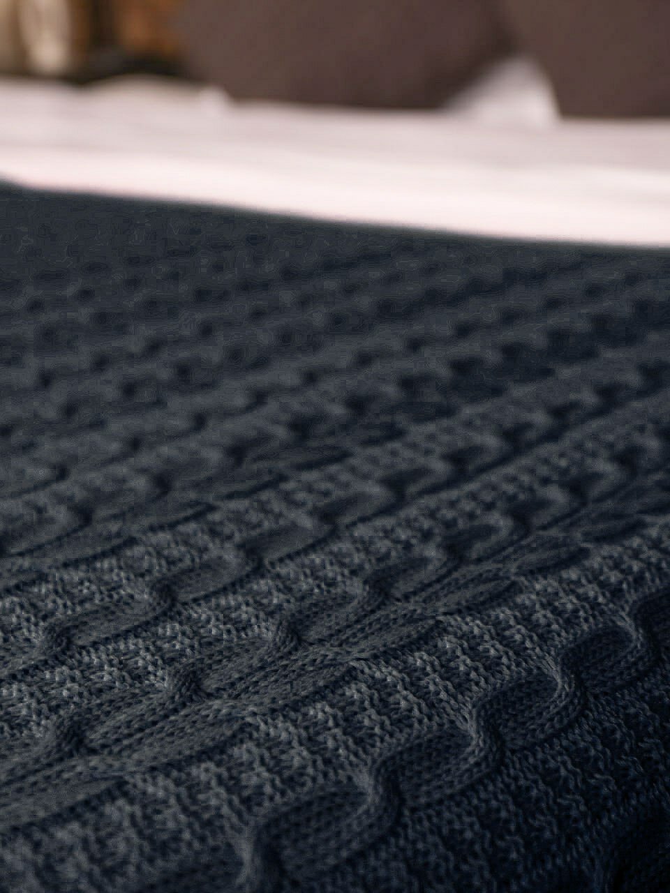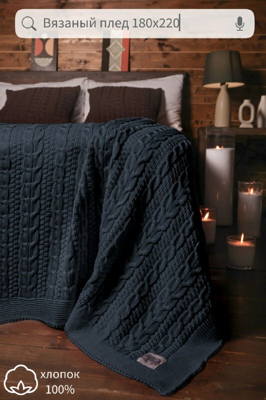 СохранитьПлед 180х220, вязаный, Warm Whiff, темно-синий, хлопок, покрывало на кровать, на диван, на кресло, в подарочной коробке интересное: