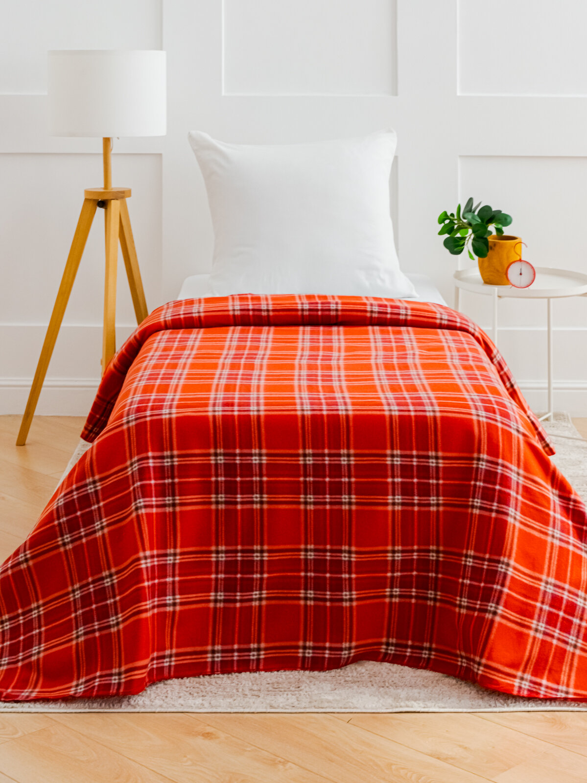 Плед 150х200 флисовый IDEASON Клетка красно-зеленая