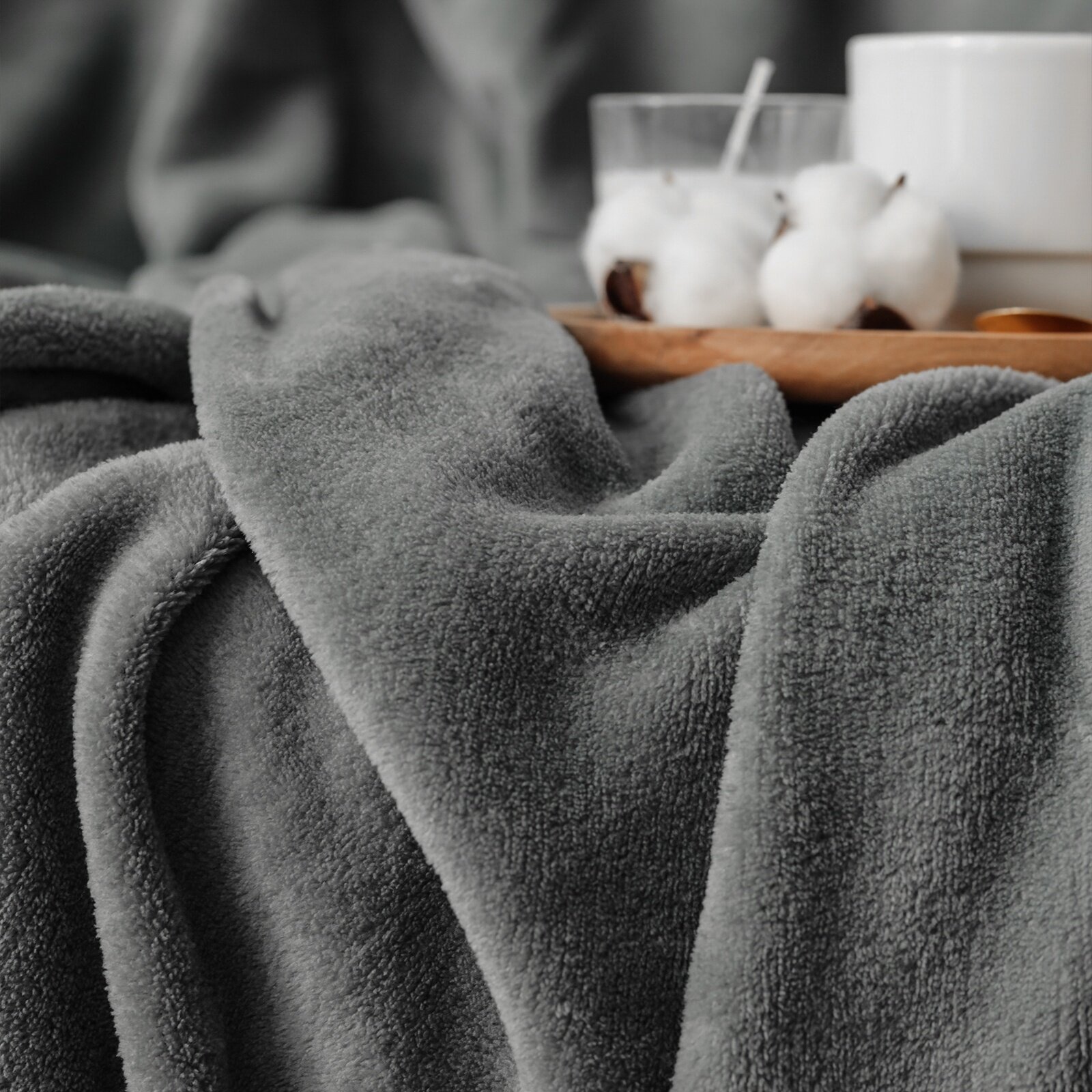 Плед Этель 180x200 см, цв. Серый, цв. Серый, 100% п/э, корал-флис 220 гр/м2