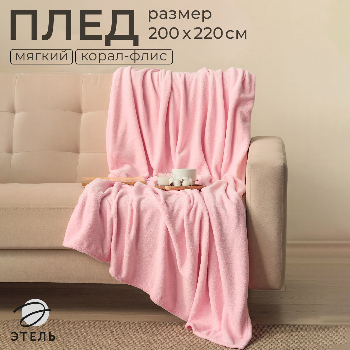 Купить Плед Этель 200*220 см, цв. розовый, 100% п/э, корал-флис , 220 гр/м2