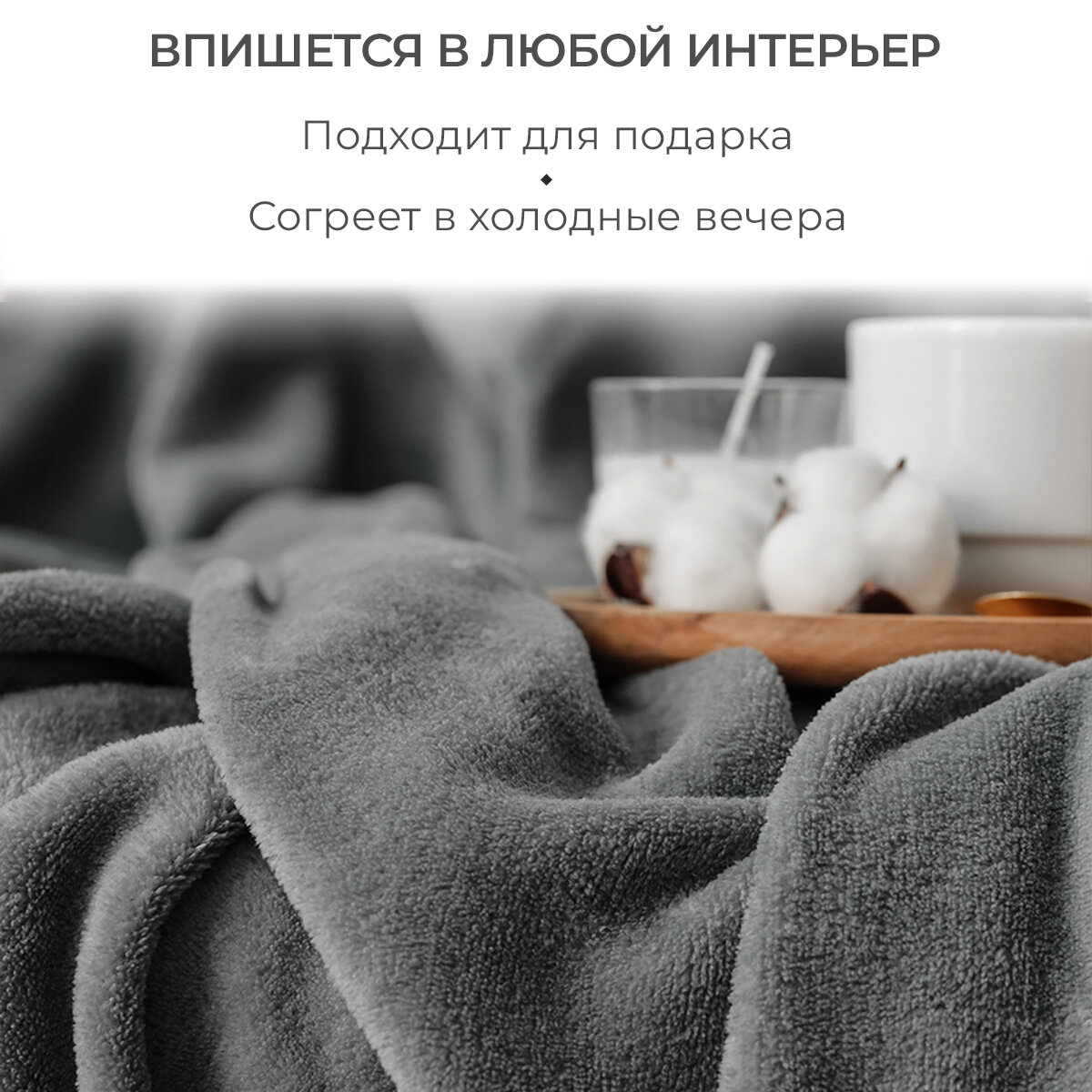 Плед "Этель" 130*175 см серый, 100% пэ, корал-флис, 300 г/и2 Этель 10269458 .