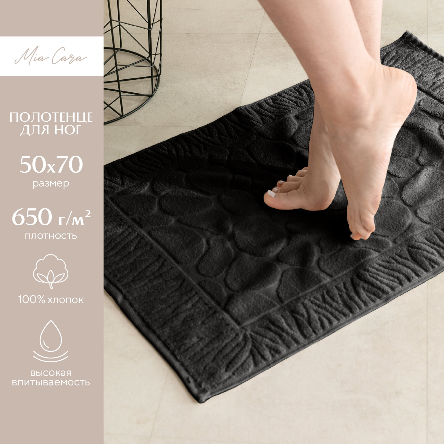 Купить Полотенце махровое для ног 50х70 (коврик) "Mia Cara" черный
