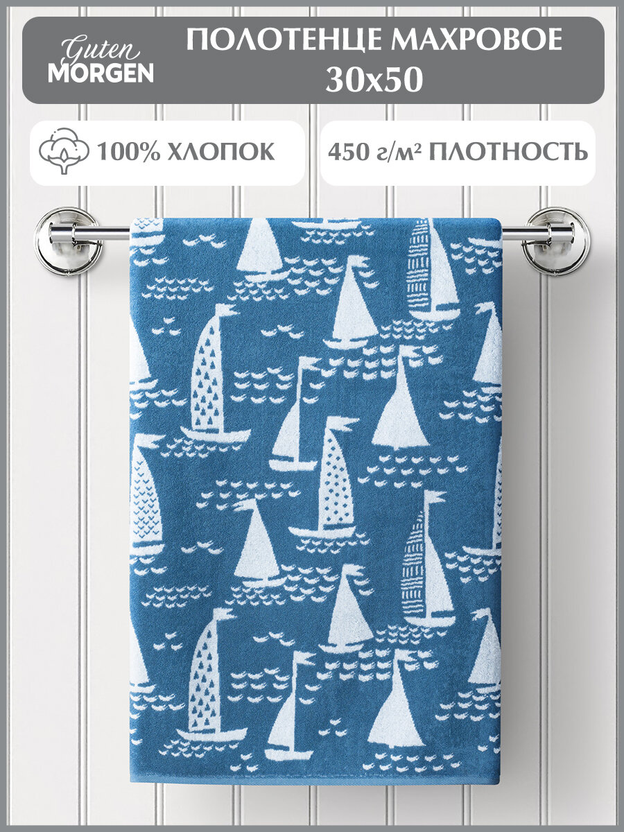 Купить Полотенце махровое, Guten Morgen, 30х50 см, рис. Сейлз, цвет: Голубой