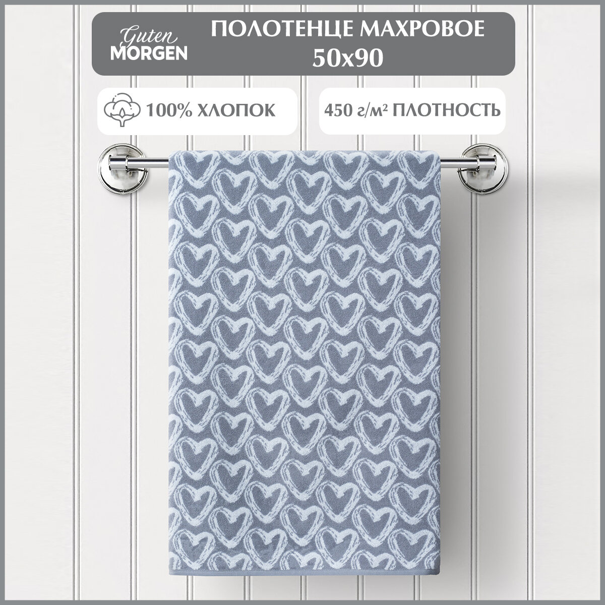 Полотенце махровое, Guten Morgen 1 шт. 50х90, Кэт Лав, хлопок 100%, 450 г/м2