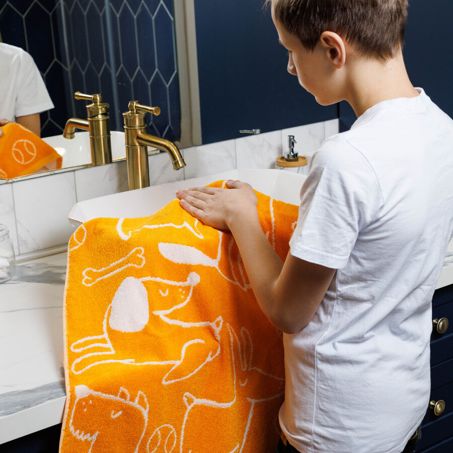 Полотенце махровое, Guten Morgen 1 шт. 70х130, Киттенз оранжевый, хлопок 100%, 450 г/м2